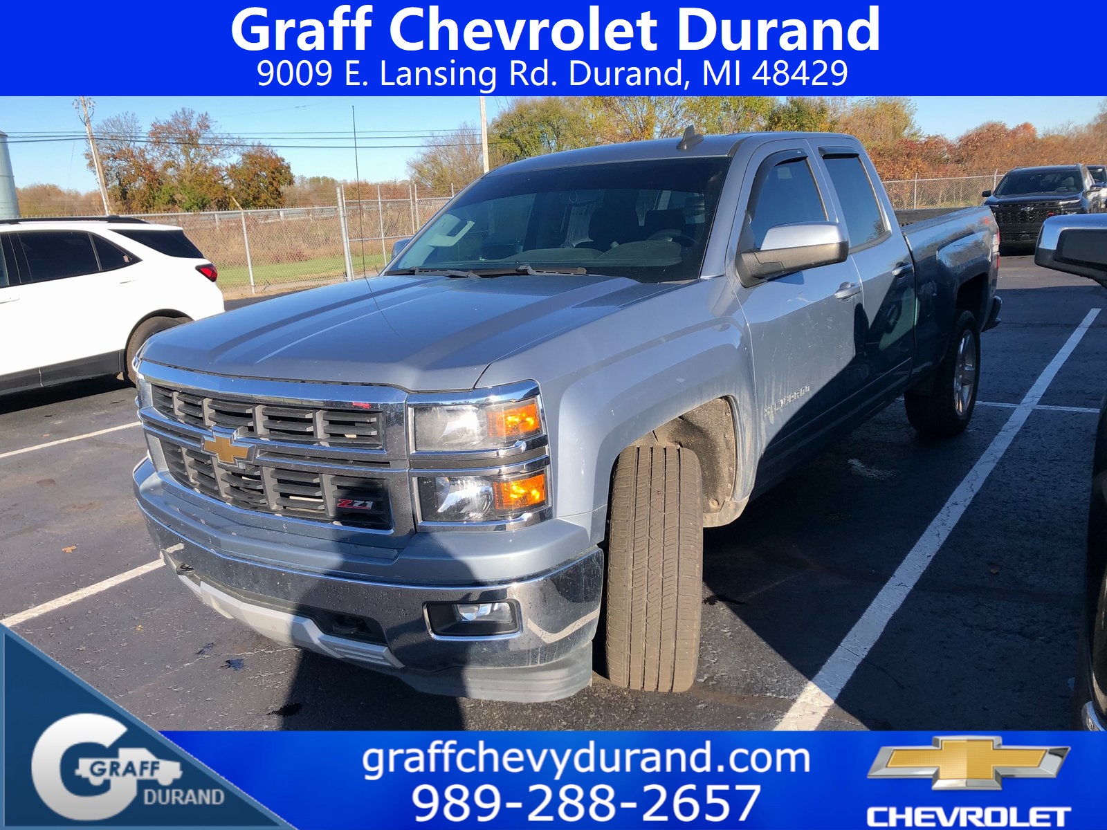 Comments: 2015 Chevrolet Silverado 1500 LT LT2 EcoTec3 5.3L V8 6-Speed Automatic Electronic with Overdrive Slate Gray MetallicVehicle features include: 6-Speed Automatic Electronic with Overdrive, 4WD, Black Cloth, 110-Volt AC Power Outlet, Dual-Zone Automatic Climate Control, Electric Rear-Window Defogger, LT Convenience Package, LT Plus Package, Power Adjustable Pedals, Power Sliding Rear Window w/Defogger, Radio: AM/FM 8 Diagonal Color Touch Screen, Rear Vision Camera w/Dynamic Guide Lines, Remote Vehicle Starter System, SiriusXM Satellite Radio, Theft Deterrent System (Unauthorized Entry), Trailering Equipment, Ultrasonic Rear Park Assist, Universal Home Remote.Recent Arrival! Odometer is 15413 miles below market average!Reviews: * Powerful, fuel-efficient engines; many available configurations; well-built, comfortable interior; quiet highway ride. Source: Edmunds * If you don’t already like the 2015 Silverado for the mere fact that it’s a Chevy, this pickup makes a compelling case for itself with a sophisticated yet intuitive infotainment system, refined interior and an available V8 engine with class-leading power output. Source: KBB.comAt Graff Chevrolet in Durand, we want to revolutionize the car buying experience by making it fun. After all, getting behind the wheel of a new car should be exciting!