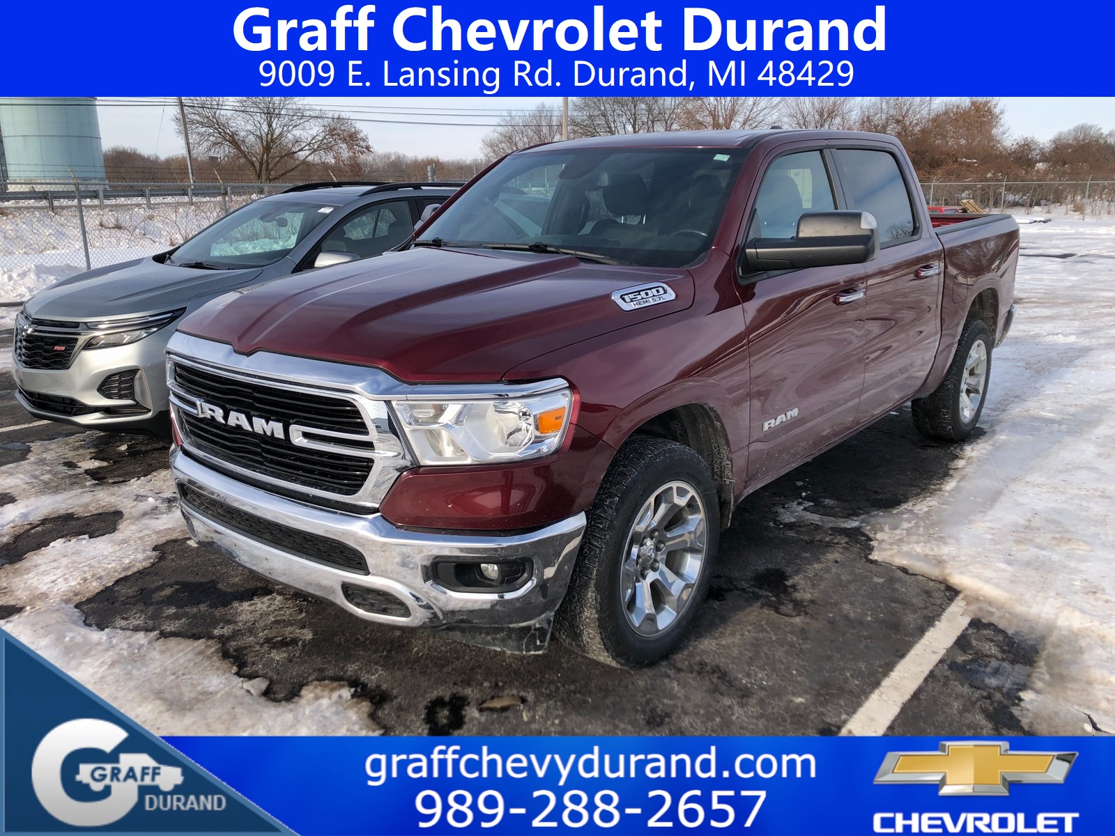 Comments: 2019 Ram 1500 Big Horn/Lone Star HEMI 5.7L V8 Multi Displacement VVT 8-Speed Automatic Delmonico Red PearlcoatVehicle features include: Add Class IV Receiver Hitch, Auto-Dimming Rear-View Mirror, Big Horn IP Badge, Big Horn Level 1 Equipment Group, Class IV Receiver Hitch, Cluster 3.5 TFT Color Display, Exterior Mirrors Courtesy Lamps, Exterior Mirrors w/Supplemental Signals, Foam Bottle Insert (Door Trim Panel), Glove Box Lamp, Power 4-Way Driver Lumbar Adjust, Power 8-Way Driver Seat, Power Adjustable Pedals, Power Black Trailer Tow Mirrors, Power Heated Fold Away Mirrors, Quick Order Package 27Z Big Horn/Lone Star, Radio: Uconnect 4 w/8.4 Display, Rear Dome w/On/Off Switch Lamp, Rear Power Sliding Window, Rear Window Defroster, Single Disc Remote CD Player, SiriusXM Satellite Radio, Steering Wheel Mounted Audio Controls, Sun Visors w/Illuminated Vanity Mirrors, Trailer Brake Control, Trailer Tow Group, Trailer Tow Mirrors, Universal Garage Door Opener.Recent Arrival!Awards: * Motor Trend Automobiles of the year * 2019 KBB.com 10 Favorite New-for-2019 Cars * 2019 KBB.com 10 Best Road Trip Cars * NACTOY 2019 North American Truck of the Year * 2019 KBB.com Best Auto Tech AwardsAt Graff Chevrolet in Durand, we want to revolutionize the car buying experience by making it fun. After all, getting behind the wheel of a new car should be exciting!