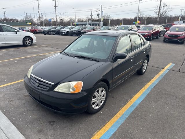 Comments: Discover the perfect balance of style, performance, and practicality in this exceptional 2003 Honda Civic EX. With its sleek exterior, spacious interior, and impressive fuel efficiency, this Civic is the ideal companion for your daily commute or weekend adventures.This Civic boasts an impressive array of features that cater to your every need:- Backup camera for added safety and convenience- Bluetooth connectivity for seamless hands-free communication- Power moonroof to let in the fresh air and natural light- 15 wheels with full covers for a polished, refined lookThe 1.7L I4 SMPI SOHC engine, paired with a 4-speed automatic transmission, delivers a remarkable 30 city/38 highway MPG, ensuring you'll spend less time at the pump and more time on the open road. The front-wheel-drive system and four-wheel independent suspension provide a smooth, responsive ride, making this Civic a true pleasure to drive.Step inside and you'll be greeted by a well-appointed cabin that offers ample space and comfort. The cloth upholstery, power windows, and remote keyless entry are just a few of the convenient features that will enhance your driving experience. The AM/FM stereo with CD player and four speakers will keep you entertained, while the air conditioning and rear window defroster will keep you comfortable in any weather.Safety is a top priority, and this Civic is equipped with dual front impact airbags, an anti-roll bar, and ABS brakes to give you peace of mind on the road. The speed control and tilt steering wheel allow you to customize your driving experience, while the backup camera and panic alarm provide an added layer of security.This 2003 Honda Civic EX is a true testament to the brand's reputation for quality, reliability, and value. With its impressive features, exceptional fuel efficiency, and timeless design, it's the perfect choice for the discerning driver who demands the best. Visit our showroom today and let us demonstrate why this Civic should be your next vehicle.