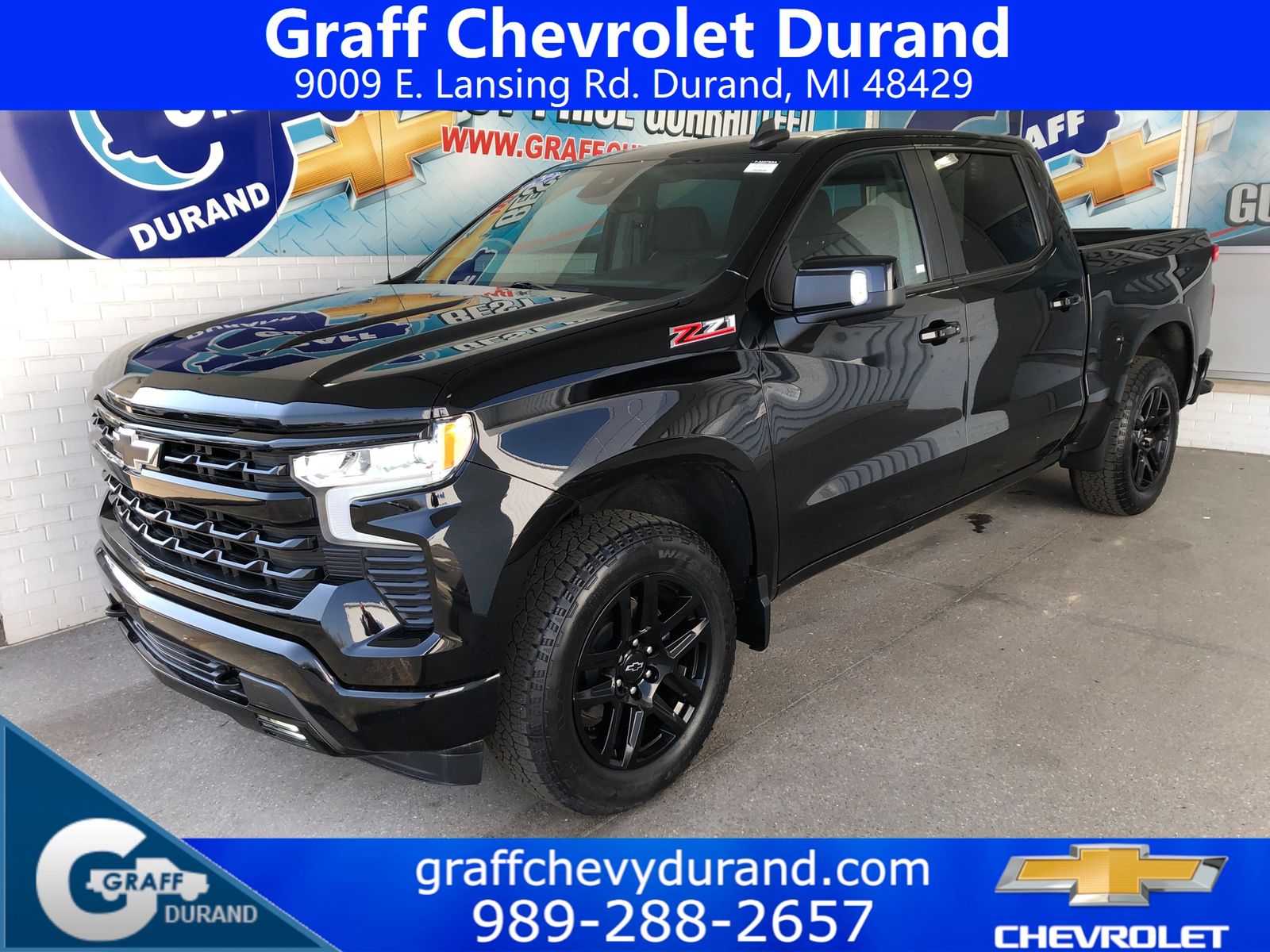 Comments: 2023 Chevrolet Silverado 1500 RST EcoTec3 5.3L V8 10-Speed Automatic BlackVehicle features include: 1 Owner, 10-Speed Automatic, 4WD, Black Cloth, 10-Way Power Driver Seat w/Lumbar, 12.3 Multicolor Reconfigurable Digital Display, 120-Volt Bed Mounted Power Outlet, 120-Volt Instrument Panel Power Outlet, 6-Speaker Audio System, All-Star Edition, All-Weather Floor Liner (LPO) (AAK), Auto-Locking Rear Differential, Bluetooth® For Phone, Chevrolet Connected Access Capable, Chevytec Spray-On Black Bedliner, Color-Keyed Carpeting Floor Covering, Compass, Convenience Package, Convenience Package II, Deep-Tinted Glass, Dual Exhaust w/Polished Outlets, Dual Rear USB Ports (Charge Only), Dual-Zone Automatic Climate Control, Electric Rear-Window Defogger, Electrical Steering Column Lock, Electronic Cruise Control, EZ Lift Power Lock & Release Tailgate, Front Frame-Mounted Black Recovery Hooks, Front LED Fog Lamps, Front Rubberized Vinyl Floor Mats, HD Rear Vision Camera, HD Surround Vision, Heated Driver & Front Outboard Passenger Seats, Heated Power-Adjustable Outside Mirrors, Heated Steering Wheel, Heavy-Duty Air Filter, High Capacity Suspension Package, High Gloss Black Mirror Caps, Hill Descent Control, Hitch Guidance, Hitch Guidance w/Hitch View, Inside Rear-View Mirror w/Tilt, Integrated Trailer Brake Controller, Keyless Open & Start, LED Cargo Area Lighting, Off-Road Suspension, OnStar & Chevrolet Connected Services Capable, Perimeter Lighting, Power Front Windows w/Driver Express Up/Down, Power Front Windows w/Passenger Express Down, Power Rear Windows w/Express Down, Power Sliding Rear Window w/Rear Defogger, Preferred Equipment Group 1SP, Premium Bose 7-Speaker Sound System, Protection Package, Rear 60/40 Folding Bench Seat (Folds Up), Rear Cross Traffic Alert-Braking, Rear Park Assist, Rear Pedestrian Alert, Rear Rubberized-Vinyl Floor Mats, Rear Wheelhouse Liners, Remote Vehicle Starter System, Safety Package, SiriusXM w/360L, Standard Suspension Package, Standard Tailgate, Steering Wheel Audio Controls, Theft Deterrent System (Unauthorized Entry), Trailer Camera Provisions, Trailer Side Blind Zone Alert, Trailering App, Trailering Package, Universal Home Remote, Wi-Fi Hot Spot Capable, Wireless Phone Projection, Wrapped Steering Wheel, Z71 Off-Road & Protection Package, Z71 Off-Road Package.Recent Arrival!At Graff Chevrolet in Durand, we want to revolutionize the car buying experience by making it fun. After all, getting behind the wheel of a new car should be exciting!