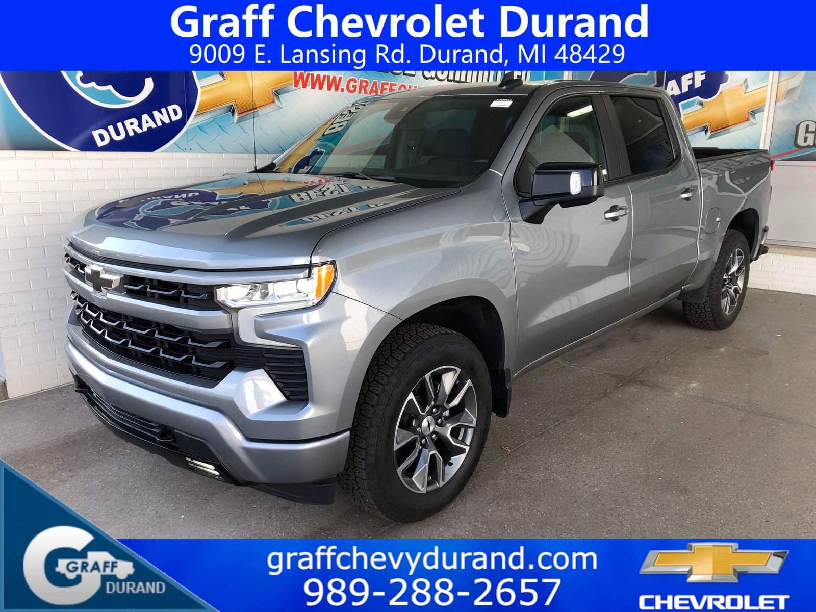 Comments: 2023 Chevrolet Silverado 1500 RST EcoTec3 5.3L V8 10-Speed Automatic Sterling Gray MetallicVehicle features include: 1 Owner, 10-Speed Automatic, 4WD, Black Cloth, 10-Way Power Driver Seat w/Lumbar, 12.3 Multicolor Reconfigurable Digital Display, 120-Volt Bed Mounted Power Outlet, 120-Volt Instrument Panel Power Outlet, 6-Speaker Audio System, All-Star Edition, Auto-Locking Rear Differential, Bluetooth® For Phone, Chevrolet Connected Access Capable, Chevytec Spray-On Black Bedliner, Color-Keyed Carpeting Floor Covering, Compass, Convenience Package, Deep-Tinted Glass, Dual Rear USB Ports (Charge Only), Dual-Zone Automatic Climate Control, Electric Rear-Window Defogger, Electrical Steering Column Lock, Electronic Cruise Control, EZ Lift Power Lock & Release Tailgate, Front Frame-Mounted Black Recovery Hooks, Front LED Fog Lamps, Front Rubberized Vinyl Floor Mats, HD Rear Vision Camera, Heated Driver & Front Outboard Passenger Seats, Heated Power-Adjustable Outside Mirrors, Heated Steering Wheel, High Gloss Black Mirror Caps, Hitch Guidance, Inside Rear-View Mirror w/Tilt, Keyless Open & Start, LED Cargo Area Lighting, OnStar & Chevrolet Connected Services Capable, Power Front Windows w/Driver Express Up/Down, Power Front Windows w/Passenger Express Down, Power Rear Windows w/Express Down, Preferred Equipment Group 1SP, Protection Package, Rear 60/40 Folding Bench Seat (Folds Up), Rear Rubberized-Vinyl Floor Mats, Rear Wheelhouse Liners, Remote Vehicle Starter System, SiriusXM w/360L, Standard Suspension Package, Standard Tailgate, Steering Wheel Audio Controls, Theft Deterrent System (Unauthorized Entry), Trailering Package, Wi-Fi Hot Spot Capable, Wireless Phone Projection, Wrapped Steering Wheel.Recent Arrival! Odometer is 18401 miles below market average!At Graff Chevrolet in Durand, we want to revolutionize the car buying experience by making it fun. After all, getting behind the wheel of a new car should be exciting!