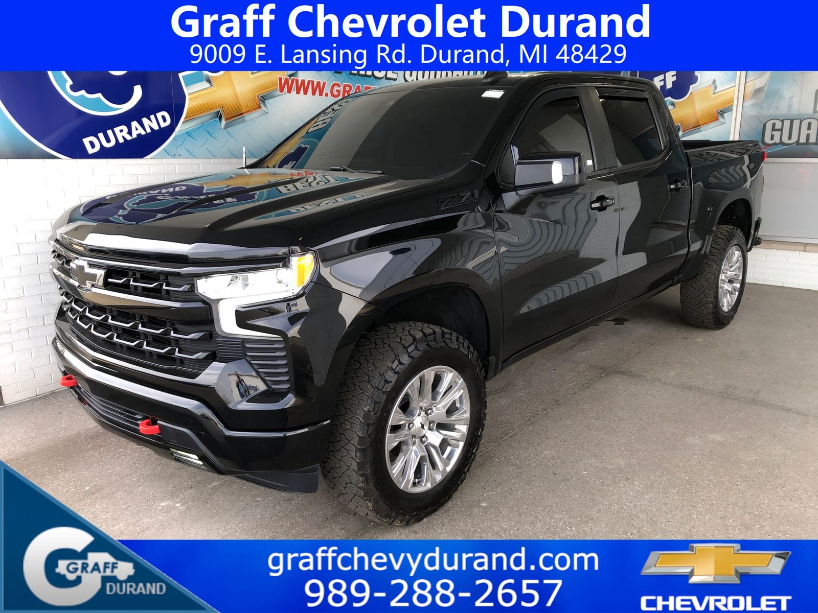Comments: 2022 Chevrolet Silverado 1500 RST EcoTec3 5.3L V8 10-Speed Automatic BlackVehicle features include: 10-Speed Automatic, 4WD, Jet Black Leather, 10-Way Power Driver Seat w/Lumbar, 12.3 Multicolor Reconfigurable Digital Display, 120-Volt Bed Mounted Power Outlet, 120-Volt Instrument Panel Power Outlet, 6-Speaker Audio System, Adaptive Cruise Control, All Star Edition Plus, All-Star Edition, All-Weather Floor Liner (LPO) (AAK), Auto-Locking Rear Differential, Black Name Plates (LPO), Bluetooth® For Phone, Chevrolet Connected Access Capable, Chevytec Spray-On Black Bedliner, Color-Keyed Carpeting Floor Covering, Compass, Convenience Package, Convenience Package II, Dark Essentials Package (LPO), Deep-Tinted Glass, Dual Exhaust w/Polished Outlets, Dual Rear USB Ports (Charge Only), Dual-Zone Automatic Climate Control, Electric Rear-Window Defogger, Electrical Steering Column Lock, Electronic Cruise Control, EZ Lift Power Lock & Release Tailgate, Front Frame-Mounted Black Recovery Hooks, Front LED Fog Lamps, Front Rubberized Vinyl Floor Mats, HD Rear Vision Camera, HD Surround Vision, Heated Driver & Front Outboard Passenger Seats, Heated Power-Adjustable Outside Mirrors, Heated Steering Wheel, Heavy-Duty Air Filter, High Gloss Black Mirror Caps, Hill Descent Control, Hitch Guidance, Hitch Guidance w/Hitch View, Inside Rear-View Mirror w/Tilt, Integrated Trailer Brake Controller, Keyless Open & Start, Leather Package, Leather Wrapped Steering Wheel, Leather-Appointed Front Seat Trim, LED Cargo Area Lighting, Manual Tilt/Telescoping Steering Column, Off-Road Suspension, OnStar & Chevrolet Connected Services Capable, Perimeter Lighting, Power Front Windows w/Driver Express Up/Down, Power Front Windows w/Passenger Express Down, Power Rear Windows w/Express Down, Power Sliding Rear Window w/Rear Defogger, Preferred Equipment Group 1SP, Premium Bose 7-Speaker Sound System, Protection Package, Rear 60/40 Folding Bench Seat (Folds Up), Rear Cross Traffic Alert-Braking, Rear Park Assist, Rear Pedestrian Detection, Rear Rubberized-Vinyl Floor Mats, Rear Wheelhouse Liners, Remote Vehicle Starter System, RST All Star Premium Package, Safety Package, SiriusXM w/360L, Standard Suspension Package, Standard Tailgate, Steering Wheel Audio Controls, Theft Deterrent System (Unauthorized Entry), Trailer Camera Provisions, Trailer Side Blind Zone Alert, Trailering App, Trailering Package, Universal Home Remote, Up-Level Rear Seat w/Storage Package, Wheels: 20 x 9 Painted Aluminum, Wi-Fi Hot Spot Capable, Wireless Phone Projection, Z71 Off-Road & Protection Package, Z71 Off-Road Package.Recent Arrival!At Graff Chevrolet in Durand, we want to revolutionize the car buying experience by making it fun. After all, getting behind the wheel of a new car should be exciting!