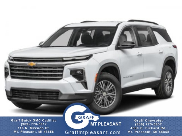 Comments: Here at Graff of Mt. Pleasant, we pride ourselves on providing the best service possible and leaving our customers with a smile. Whether the vehicles are on the lot or still in transit, feel free to call us or stop in to the dealership and we will be happy to answer any questions you may have. We have a wide variety of GM vehicles available. Check out our inventory and contact us to bring home your perfect vehicle today! This SUV gives you versatility, style and comfort all in one vehicle. You appreciate the finer things in life, the vehicle you drive should not be the exception. Style, performance, sophistication is in a class of its own with this stunning Chevrolet Traverse AWD LT. Once you see this Chevrolet, you'll quickly see that this is the perfect vehicle for the outdoor junky! You'll even feel relaxed knowing that this All-Wheel drive vehicle will get you to where you are going no matter what may come your way. Also, with this Chevrolet Traverse's dependable control you'll be able to drive into the sunset without a care in the world! Just what you've been looking for. With quality in mind, this vehicle is the perfect addition to take home.