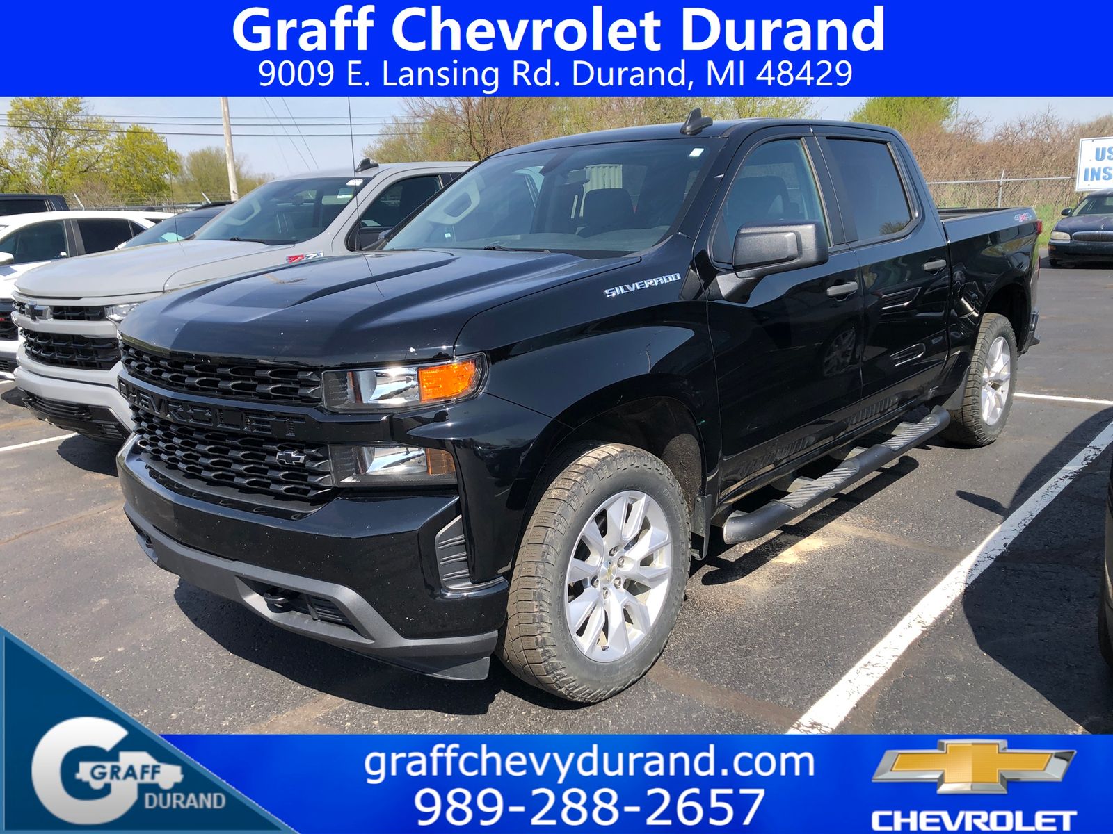 Comments: 2021 Chevrolet Silverado 1500 Custom 2.7L Turbo 8-Speed Automatic BlackVehicle features include: 1 Owner, 8-Speed Automatic, 4WD, Jet Black Cloth, 170 Amp Alternator, 3.5 Diagonal Monochromatic Display, 4G LTE Wi-Fi Hot Spot Capable, Black Name Plates (LPO), Bluetooth® For Phone, Body Color Grille, Chevrolet Connected Access Capable, Color-Keyed Carpeting Floor Covering, Compass, Custom Convenience Package, Custom Value Package, Dark Essentials Package (LPO), Deep-Tinted Glass, Electric Rear-Window Defogger, Electronic Cruise Control, EZ Lift Power Lock & Release Tailgate, Front Frame-Mounted Black Recovery Hooks, Front Rubberized Vinyl Floor Mats, Hitch Guidance, Infotainment Package, LED Cargo Area Lighting, Manual Tilt Wheel Steering Column, OnStar & Chevrolet Connected Services Capable, Power Door Locks, Power Front Windows w/Driver Express Up/Down, Power Front Windows w/Passenger Express Down, Power Rear Windows w/Express Down, Preferred Equipment Group 1CX, Rear 60/40 Folding Bench Seat (Folds Up), Rear Rubberized-Vinyl Floor Mats, Remote Keyless Entry, Remote Vehicle Starter System, SiriusXM Radio, Standard Tailgate, Theft Deterrent System (Unauthorized Entry), Trailering Package.Recent Arrival!At Graff Chevrolet in Durand, we want to revolutionize the car buying experience by making it fun. After all, getting behind the wheel of a new car should be exciting!