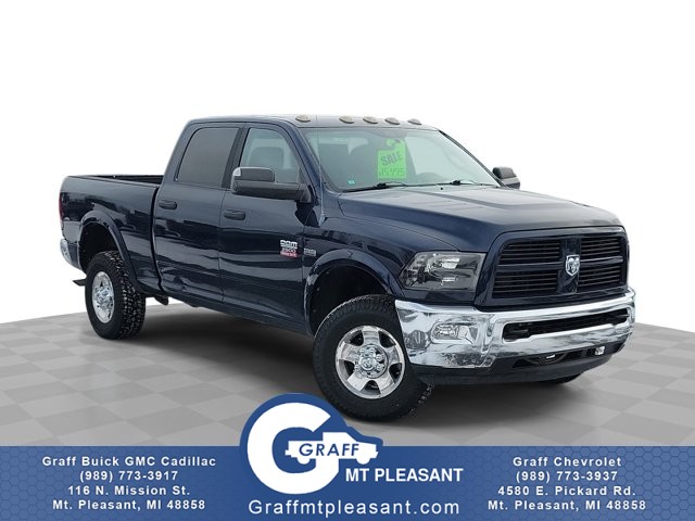 Comments: Graff Mt. Pleasant sets very high standards for our Pre-Owned Inventory. All of our vehicles go through a detailed inspection with our GM Certified Mechanics, so you can have peace of mind knowing you have a safe vehicle! We take pride in making sure we price our vehicles very aggressively within the market. We want to make sure we exceed all of our customers expectations and give them the best experience possible. As much as we attempt to keep all of our inventory up to date, we cannot guarantee that this exact vehicle is still available for sale. We look forward to earning your business! This 4WD-equipped vehicle will handle majestically on any terrain and in any weather condition your may find yourself in. The benefits of driving an Four Wheel Drive vehicle, such as this Ram2500 Outdoorsman, include superior acceleration, improved steering, and increased traction and stability. It's not a misprint. And the odometer isn't broken. This is a very low mileage Ram 2500. A rare find these days. This vehicle won't last long, take it home today. More information about the 2012 Ram 2500: The Ram 2500 and 3500 are heavy-duty trucks that sacrifice some ride quality and maneuverability, compared to lighter-duty pickups, in favor of improved towing and hauling ability. The heavy-duty Ram models are, like rival models from Chevrolet, GMC and Ford, far more luxurious and comfortable than their predecessors, even as they haven't given up any serious work ability. Entertainment and connectivity features abound and hint that these trucks see use well beyond the construction site. Ram says that the 2500 and 3500 are the first in their segment to offer an available 10-speaker surround-sound system, as well as a number of other premium options such as Sirius Backseat TV. Interesting features of this model are serious towing and hauling ability, stump-pulling Cummins turbo-diesel, full set of luxury and entertainment options, and Tough, work-oriented construction