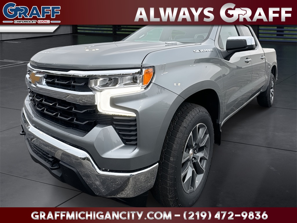 Comments: AT GRAFF CHEVY GMC OF MICHIGAN CITY YOU WON'T FIND ANY HIDDEN FEES LIKE SOME OTHER DEALERS..STOP IN AND GET YOUR DEAL TODAY..THIS VEHICLE IS LOCATED AT OUR GRAFF GMC/CHEVY STORE AT 9911 W 300 N MICHIGAN CITY IN 46360**219-879-6789** 8-Speed Automatic, 4WD, Black Cloth. Cypress Gray 2026 Chevrolet Silverado 1500 LT 2026 Chevrolet Silverado 1500 LT 4WD 8-Speed Automatic 2.7L I4 Turbocharged DOHC 16V LEV3-SULEV30 310hp