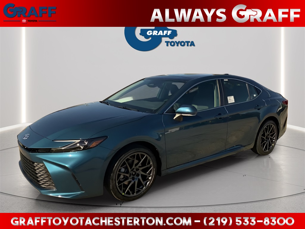 Comments: 2026 Toyota Camry XLE Ocean GemFWD eCVT 2.5L 4-Cylinder 16V DOHCBlack Leather, 4-Wheel Disc Brakes, 6 Speakers, ABS brakes, Air Conditioning, Apple CarPlay/Android Auto, Auto High-beam Headlights, Auto-dimming Rear-View mirror, Automatic temperature control, Brake assist, Delay-off headlights, Dual front impact airbags, Dual front side impact airbags, Electronic Stability Control, Emergency communication system: Safety Connect (5-year trial), Exterior Parking Camera Rear, Four wheel independent suspension, Front anti-roll bar, Front Bucket Seats, Front dual zone A/C, Fully automatic headlights, Heated door mirrors, Heated Front Seats, Heated front seats, Heated steering wheel, Illuminated entry, Knee airbag, Leather Shift Knob, Leather steering wheel, Low tire pressure warning, Occupant sensing airbag, Outside temperature display, Overhead airbag, Panoramic Glass Roof, Power driver seat, Power passenger seat, Power steering, Power windows, Rear anti-roll bar, Rear reading lights, Rear seat center armrest, Rear window defroster, Remote keyless entry, Speed control, Speed-sensing steering, Steering wheel mounted audio controls, Telescoping steering wheel, Tilt steering wheel, Traction control, Turn signal indicator mirrors, Variably intermittent wipers.Welcome to Graff Toyota – Northwest Indiana’s Newest Premier Auto Dealer, Now Open in Burns Harbor Discover Graff Toyota, proudly serving Burns Harbor, Valparaiso, Chesterton, and the entire Northwest Indiana region as the area’s newest premier Toyota dealership. As part of a trusted, family-owned dealership group, Graff Toyota brings a community-first, family-focused approach to car buying—delivering honest service, unbeatable value, and the latest Toyota models in a convenient, central location. Located just off I-80/94, Graff Toyota offers easy access for customers across Northwest Indiana and Chicagoland. Whether you're in Portage, Michigan City, or commuting from Chicago, we’re only minutes away—and our remote delivery service means we can bring your new vehicle right to your driveway. Experience the difference of working with a dealership that’s committed to community, convenience, and customer care. At Graff Toyota, we make it easy for you to browse, buy, and drive—locally or remotely. Always Graff!!! 48/47 City/Highway MPG