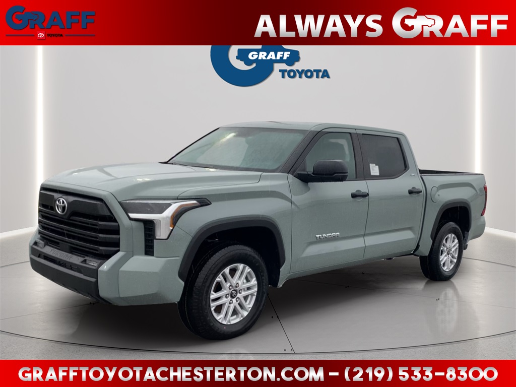 Comments: 2026 Toyota Tundra SR5 Lunar Rock4WD 10-Speed Automatic 3.4L V64WD, Black Cloth, 18 Alloy Wheels, 9 Speakers, Air Conditioning, AM/FM radio: SiriusXM, Apple CarPlay/Android Auto, Auto High-beam Headlights, Automatic temperature control, Brake assist, Delay-off headlights, Electronic Stability Control, Exterior Parking Camera Rear, Front Bucket Seats, Front fog lights, Fully automatic headlights, Heated door mirrors, Illuminated entry, Outside temperature display, Overhead console, Power door mirrors, Power driver seat, Power steering, Power windows, Radio: Audio Multimedia System, Rear reading lights, Rear step bumper, Rear window defroster, Remote keyless entry, Safety Connect, Steering wheel mounted audio controls, Tachometer, Telescoping steering wheel, Tilt steering wheel, Trip computer.Welcome to Graff Toyota – Northwest Indiana’s Newest Premier Auto Dealer, Now Open in Burns Harbor Discover Graff Toyota, proudly serving Burns Harbor, Valparaiso, Chesterton, and the entire Northwest Indiana region as the area’s newest premier Toyota dealership. As part of a trusted, family-owned dealership group, Graff Toyota brings a community-first, family-focused approach to car buying—delivering honest service, unbeatable value, and the latest Toyota models in a convenient, central location. Located just off I-80/94, Graff Toyota offers easy access for customers across Northwest Indiana and Chicagoland. Whether you're in Portage, Michigan City, or commuting from Chicago, we’re only minutes away—and our remote delivery service means we can bring your new vehicle right to your driveway. Experience the difference of working with a dealership that’s committed to community, convenience, and customer care. At Graff Toyota, we make it easy for you to browse, buy, and drive—locally or remotely. Always Graff!!!