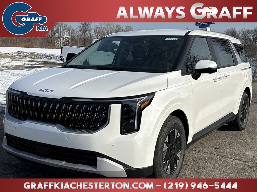 Comments: 2026 Kia Carnival Hybrid LXS Snow White PearlFWD 6-Speed Automatic 1.6L I4 DGI Hybrid Turbocharged DOHC 16V LEV3-SULEV301.6L I4 DGI Hybrid Turbocharged DOHC 16V LEV3-SULEV30.34/31 City/Highway MPG Price includes: $1000 - KFA Dealer Choice Program: $1000 discount and 5.25% APR for 36 months. $30.08 per $1000 financed. Available to well qualified buyers who finance through Kia Finance America. 506. Exp. 03/02/2026