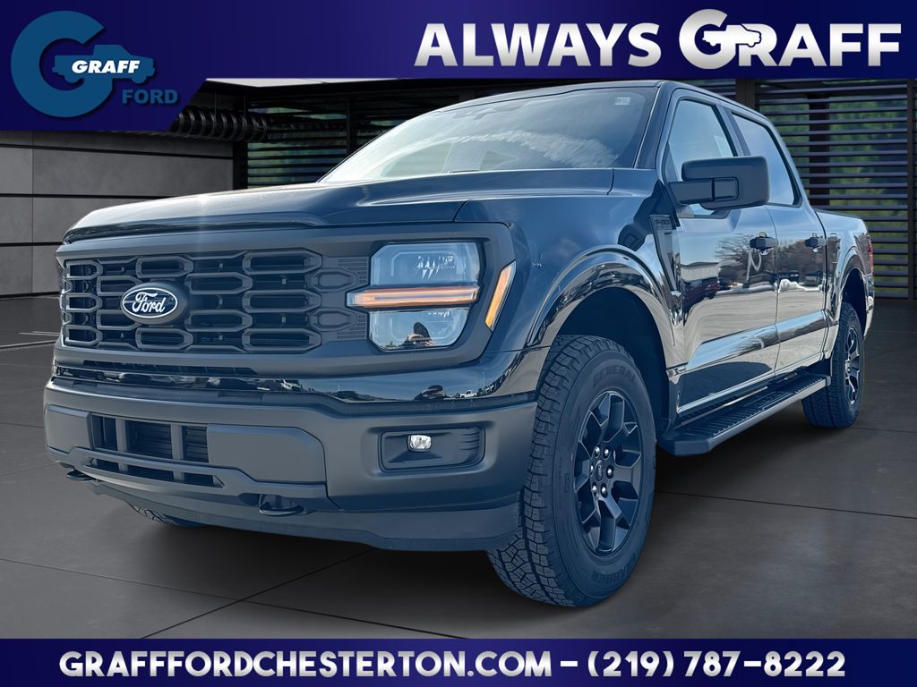 Comments: 2025 Ford F-150 STX Agate Black Metallic4WD 10-Speed Automatic 2.7L V6 EcoBoost4WD, 3.55 Axle Ratio, 4-Wheel Disc Brakes, 400W Cab & Bed Outlets, 6 Speakers, 6 Black Running Boards, ABS brakes, Air Conditioning, Argent Front/Rear Bumper, Auto High-beam Headlights, Brake assist, Console Worksurface, Delay-off headlights, Dual Exhaust w/Black Tips, Dual front impact airbags, Dual front side impact airbags, Electronic Stability Control, Emergency communication system: SYNC 4 911 Assist, Equipment Group 201A FX4, Front anti-roll bar, Front Bucket Seats, Front wheel independent suspension, Fully automatic headlights, FX4 Box Decal, GVWR: 6,650 lbs Payload Package, Illuminated entry, LED Fog Lamps w/LED Cornering Lamp, Low tire pressure warning, Mobile Office Package, Monotube Rear Shocks, Occupant sensing airbag, Off-Road Tuned Front Shock Absorbers, Overhead airbag, Power steering, Power windows, Radio: AM/FM Stereo w/SiriusXM 360L, Rear Parking Sensors, Rear window defroster, Remote keyless entry, Speed control, Steering wheel mounted audio controls, STX Badge in Fender Vent, SYNC 4 w/Enhanced Voice Recognition, Telescoping steering wheel, Tilt steering wheel, Tough Bed Spray-In Bedliner, Tray Style Floor Liner, Unique Cloth 40/Console/40 Front Seats, Variably intermittent wipers, Wheels: 18 Black Painted Aluminum.