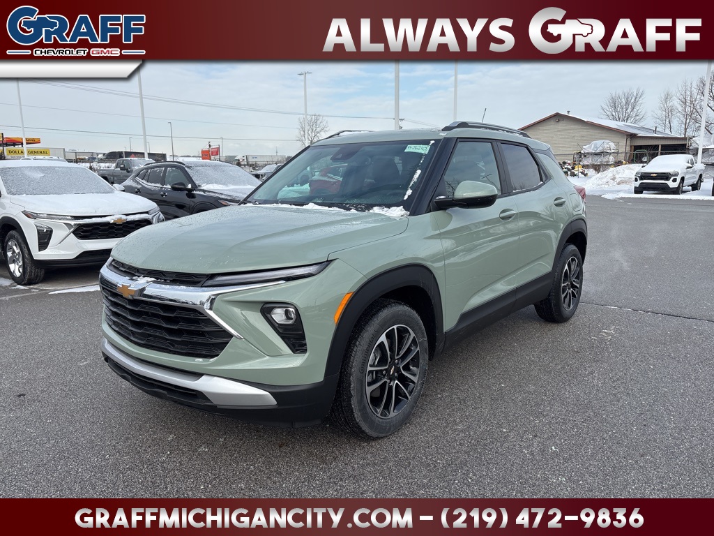 Comments: AT GRAFF CHEVY GMC OF MICHIGAN CITY YOU WON'T FIND ANY HIDDEN FEES LIKE SOME OTHER DEALERS..STOP IN AND GET YOUR DEAL TODAY..THIS VEHICLE IS LOCATED AT OUR GRAFF GMC/CHEVY STORE AT 9911 W 300 N MICHIGAN CITY IN 46360**219-879-6789** Cacti Green 2026 Chevrolet TrailBlazer LT 2026 Chevrolet TrailBlazer LT FWD CVT 1.3L I3 Turbocharged DOHC 12V LEV3-SULEV30 137hp