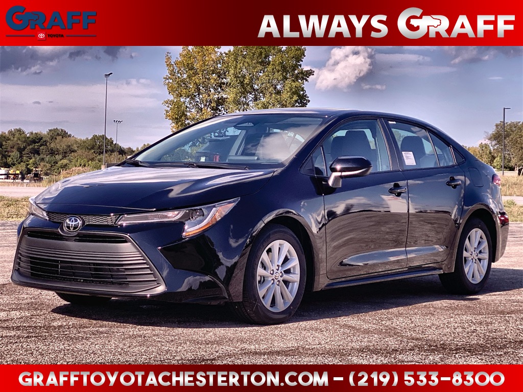 Comments: 2026 Toyota Corolla LE Midnight Black MetallicFWD CVT 2.0L I4 PDI DOHC 16V LEV3-SULEV30 169hp16 Alloy Wheels, 4-Wheel Disc Brakes, 6 Speakers, ABS brakes, Air Conditioning, All Weather Floor Liner Package (TMS), Apple CarPlay/Android Auto, Auto High-beam Headlights, Automatic temperature control, Brake assist, Delay-off headlights, Dual front impact airbags, Dual front side impact airbags, Electronic Stability Control, Emergency communication system: Safety Connect (up to 10-year trial subscription), Exterior Parking Camera Rear, Fabric Seat Trim, Front anti-roll bar, Front Bucket Seats, Front wheel independent suspension, Fully automatic headlights, Heated door mirrors, Illuminated entry, Knee airbag, LE Premium Package, Low tire pressure warning, Occupant sensing airbag, Overhead airbag, Power door mirrors, Power steering, Power windows, Qi-Compatible Wireless Smartphone Charger, Radio: 8 Toyota Audio Multimedia, Rear anti-roll bar, Rear side impact airbag, Rear window defroster, Remote keyless entry, Smart Key System, Steering wheel mounted audio controls, Telescoping steering wheel, Tilt steering wheel, Traction control.Welcome to Graff Toyota – Northwest Indiana’s Newest Premier Auto Dealer, Now Open in Burns Harbor Discover Graff Toyota, proudly serving Burns Harbor, Valparaiso, Chesterton, and the entire Northwest Indiana region as the area’s newest premier Toyota dealership. As part of a trusted, family-owned dealership group, Graff Toyota brings a community-first, family-focused approach to car buying—delivering honest service, unbeatable value, and the latest Toyota models in a convenient, central location. Located just off I-80/94, Graff Toyota offers easy access for customers across Northwest Indiana and Chicagoland. Whether you're in Portage, Michigan City, or commuting from Chicago, we’re only minutes away—and our remote delivery service means we can bring your new vehicle right to your driveway. Experience the difference of working with a dealership that’s committed to community, convenience, and customer care. At Graff Toyota, we make it easy for you to browse, buy, and drive—locally or remotely. Always Graff!!! 32/41 City/Highway MPG