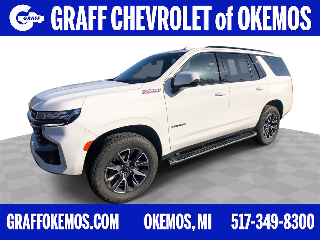 Comments: FREE 2 year/30k mile maintenance!!Priced below KBB Fair Purchase Price!16/20 City/Highway MPG 4WD, Black Leather, 10-Way Power Driver & Passenger Seat Adjusters, 1st & 2nd Row Color-Keyed Carpeted Floor Mats, 2 USB Data Ports, 2-Speed Active Electronic AutoTrac Transfer Case, 2nd Row Pwr Release 60/40 Split-Folding Bench Seat, 3rd Row 60/40 Power-Folding Split-Bench Seat, 3rd row seats: split-bench, 4-Wheel Disc Brakes, 9 Speakers, ABS brakes, Air Conditioning, Alloy wheels, AM/FM radio: SiriusXM with 360L, Apple CarPlay/Android Auto, Auto High-beam Headlights, Auto-Dimming Inside Rear-View Mirror, Auto-dimming Rear-View mirror, Automatic Heated Steering Wheel, Automatic temperature control, Black Tubular Assist Steps, Bose 9-Speaker Stereo Audio System Feature, Brake assist, Bright Front & Rear Door Sill Plates, Bumpers: body-color, Color-Keyed Carpeting Floor Covering, Compass, Delay-off headlights, Driver & Front Outboard Passenger Airbags, Driver Alert Package, Driver door bin, Driver vanity mirror, Dual front impact airbags, Dual front side impact airbags, Dual-Pane Power Panoramic Sunroof, Electronic Stability Control, Emergency communication system: OnStar and Chevrolet connected services capable, Floor Console w/Storage Area, Four wheel independent suspension, Front & Rear Park Assist, Front anti-roll bar, Front Bucket Seats, Front Center Armrest, Front dual zone A/C, Front High-Approach Angle Fascia, Front High-Back Reclining Bucket Seats, Front reading lights, Fully automatic headlights, Garage door transmitter, Hands-Free Rear Power Programmable Liftgate, HD Radio, HD Surround Vision, Heated 2nd Row Outboard Seats, Heated door mirrors, Heated Driver & Front Passenger Seats, Heated front seats, Hill Descent Control, Illuminated entry, Infotainment Display, Lane Change Alert w/Side Blind Zone Alert, Lane Keep Assist w/Lane Departure Warning, Leather Seat Trim, Leather steering wheel, Leather-Wrapped Steering Wheel, LED Daytime Running Lamps, Low tire pressure warning, Luxury Package, Memory seat, Memory Settings, Memory Settings for Driver, Occupant sensing airbag, Outside Heated Power-Adjustable Mirrors, Outside temperature display, Overhead airbag, Overhead console, Panic alarm, Passenger door bin, Passenger vanity mirror, Power door mirrors, Power driver seat, Power Liftgate, Power passenger seat, Power Release 2nd Row Bucket Seats, Power steering, Power Tilt & Telescopic Steering Column, Power windows, Preferred Equipment Group 2Z7, Premium audio system: Chevrolet Infotainment 3, Premium Smooth Ride Suspension, Radio: Chevrolet Infotainment 3 Plus System, Rain sensing wipers, Rear air conditioning, Rear anti-roll bar, Rear Cross Traffic Alert, Rear Pedestrian Alert, Rear reading lights, Rear seat center armrest, Rear window defroster, Rear window wiper, Red Horizontal-Mounted Recovery Hooks, Remote keyless entry, Remote Start, Roof rack: rails only, Security system, SiriusXM Radio w/360L, Speed control, Speed-sensing steering, Split folding rear seat, Spoiler, Steering wheel mounted audio controls, Tachometer, Telescoping steering wheel, Tilt steering wheel, Traction control, Trip computer, Universal Home Remote, Variably intermittent wipers, Voltmeter, Wheels: 20 x 9 Machined Aluminum.4WD 10-Speed Automatic with Overdrive EcoTec3 5.3L V8Awards: * JD Power Automotive Performance, Execution and Layout (APEAL) Study * ALG Residual ValueStop By Today Test drive this must-see, must-drive, must-own beauty today at Graff Chevrolet, 1748 West Grand River Ave, Okemos, MI 48805. CALL TRICIA TODAY FOR A TEST DRIVE @ 517-827-5018 OR TEXT ME @ 517-896-9939.