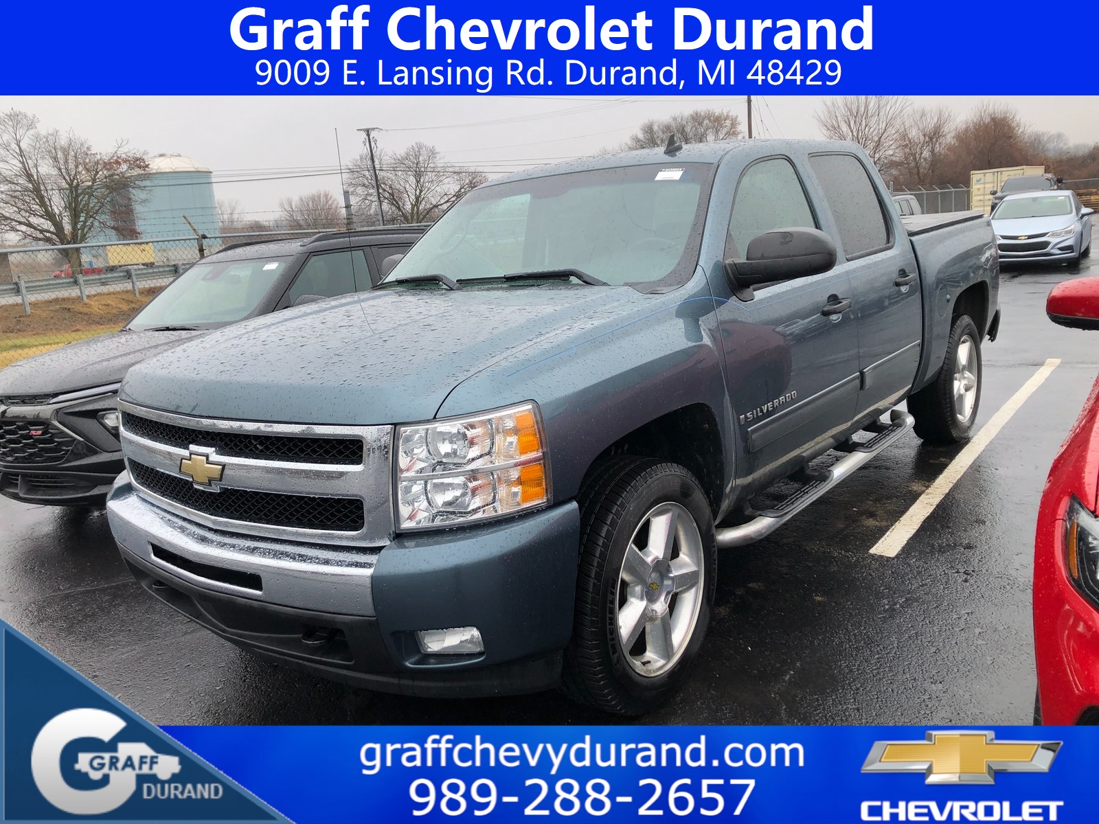 Comments: 2009 Chevrolet Silverado 1500 LT Vortec 5.3L V8 SFI Flex Fuel 6-Speed Automatic Blue Granite MetallicVehicle features include: Vortec 5.3L V8 SFI Flex Fuel, 6-Speed Automatic, 4WD, Ebony Cloth, 6 Speaker Audio System Feature, All Star Package, Black Power Heated Outside Rear-View Mirrors, Body-Colored Bodyside Moldings, Chrome Grille Surround, Color-Keyed Carpeting w/Rubberized Vinyl Floormats, Driver & Front Passenger Illuminated Visor Mirrors, Driver-Side Manual Lumbar Control Seat Adjuster, Electronic AutoTrac Transfer Case, Electronic Cruise Control w/Set & Resume Speed, Exterior Plus Package, EZ-Lift Tailgate, Four 20 x 8.5 Chrome-Clad Aluminum Wheels, Front Halogen Fog Lamps, Heated Power-Adjustable Black Outside Mirrors, Heavy-Duty Rear Automatic Locking Differential, Heavy-Duty Trailering Package, High-Performance Suspension Package, Inside Auto-Dimming Rear-View Mirror, Leather-Wrapped Steering Wheel, Locking Tailgate, LT1 Equipment Group, Power Door Locks w/Remote Keyless Entry, Power Windows w/Driver Express-Down, Power Windows w/Driver/Front Passenger Express-Down, Remote Keyless Entry w/2 Transmitters, Remote Vehicle Starter System, Solar-Ray Deep-Tinted Glass, Spare Tire Lock, StabiliTrak Stability Control System, Universal Home Remote.Recent Arrival! Odometer is 55254 miles below market average!Reviews: * If you need to tailor your pickup truck to your exact requirements, the 2009 Chevrolet Silverado enables you to do just that with a wide variety of configurations, bed lengths and trim levels. The Silverado’s V8 engine lineup offers Active Fuel Management technology, Flex-Fuel E85 capability and even a hybrid model. Source: KBB.comAt Graff Chevrolet in Durand, we want to revolutionize the car buying experience by making it fun. After all, getting behind the wheel of a new car should be exciting!