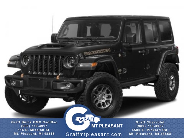 Comments: Graff Mt. Pleasant sets very high standards for our Pre-Owned Inventory. All of our vehicles go through a detailed inspection with our GM Certified Mechanics, so you can have peace of mind knowing you have a safe vehicle! We take pride in making sure we price our vehicles very aggressively within the market. We want to make sure we exceed all of our customers expectations and give them the best experience possible. As much as we attempt to keep all of our inventory up to date, we cannot guarantee that this exact vehicle is still available for sale. We look forward to earning your business! This Jeep Wrangler Rubicon 392 has a tough exterior complemented by a well-designed interior that offers all the comforts you crave. You appreciate the finer things in life, the vehicle you drive should not be the exception. Style, performance, sophistication is in a class of its own with this stunning Jeep Wrangler Rubicon 392. Handle any terrain with ease thanks to this grippy 4WD. Whether you're on a slick pavement or exploring the back country, you'll be able to do it with confidence. Exceptional in every sense of the word, this incredibly low mileage vehicle is one of a kind. You can take the guesswork out of searching for your destination with this Jeep Wrangler Rubicon 392's installed Navigation system. Intricately stitched leather and ergonomic design seats are among the details in which test drivers say that Jeep Wrangler Rubicon 392 is in a league of its own