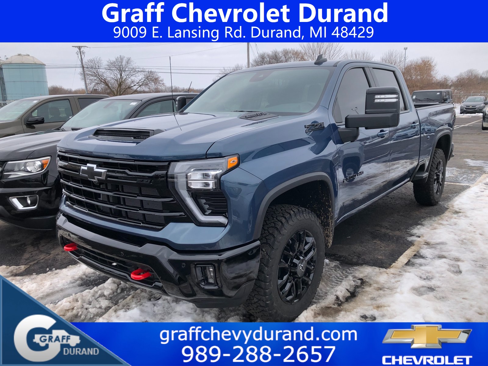 Comments: 2025 Chevrolet Silverado 2500HD LT 6.6L V8 10-Speed Automatic Lakeshore Blue MetallicVehicle features include: 1 Owner, 10-Speed Automatic, 4WD, Jet Black Cloth, 10-Way Power Driver Seat Adjuster with Lumbar, 120-Volt Bed Mounted Power Outlet, 120-Volt Interior Power Outlet, 17 Machined Aluminum Wheels, 170 Amp Alternator, 2-Speed Electronic Shift Transfer Case, 220 Amp Alternator, 3.73 Rear Axle Ratio, 4-Way Manual Driver Seat Adjuster, All Star Edition, Animated LED Projector Headlamps, Auto-Dimming Inside Rear-View Mirror, Bed View Camera with Two Trailer Camera Provisions, Black Chevytec Spray-on Bedliner, Black Grille Bar with Chevy Black Bow Tie, Black Mirror Caps, Bluetooth® For Phone, Chevrolet Connected Access Capable, Cloth Rear Seat with Storage Package, Color-Keyed Carpeting Floor Covering, Compass, Convenience Package, Convenience Package II, Deep-Tinted Glass, Dual-Zone Automatic Climate Control, Durabed Pickup Bed, Electric Rear-Window Defogger, Electronic Cruise Control with Set and Resume Speed, EZ Lift Power Lock and Release Tailgate, Front Frame-Mounted Red Recovery Hooks, Front LED Fog Lamps, Front Rubberized Vinyl Floor Mats, Gooseneck/5th Wheel Prep Package, Halogen Reflector Headlamps, HD Rear Vision Camera, HD Surround Vision, Heat Package, Heated and Auto-Dimming Vertical Trailering Mirrors, Heated Driver and Front Outboard Passenger Seating, Heated Steering Wheel, Heated Vertical Trailering Mirrors, High Gloss Black Front Bumper, High Gloss Black Mirror Caps, High Gloss Black Rear Bumper, Hill Descent Control, Hitch Guidance with Hitch View, Hitch Package, in-Vehicle Trailering App System, Keyless Open and Start, LED Cargo Area Lighting, Manual Tilt and Telescoping Steering Column, Off-Road Suspension, OnStar Services Capable, Power Door Locks, Power Front Windows with Driver Express Up/Down, Power Front Windows with Passenger Express Down, Power Rear Windows with Express Down, Power Sliding Rear Window with Defogger, Preferred Equipment Group 1LT, Push Button Start, Rear 60/40 Folding Bench Seat (folds Up), Rear Cross Traffic Alert, Rear Rubberized Vinyl Floor Mats, Remote Start Package, Remote Vehicle Starter System, Safety Package, SiriusXM with 360L Trial Subscription, Snow Plow Prep/Camper Package, Standard Tailgate, Steering Wheel Audio Controls, Suspension Package, Trail Boss Package, Trailer Camera Provisions, Trailer Side Blind Zone Alert, Ultrasonic Front and Rear Park Assist, Unauthorized Entry Theft-Deterrent System, Universal Home Remote, Wheels: 20 High Gloss Black Painted, Wi-Fi Hotspot Capable, Wireless Phone Projection, Wrapped Steering Wheel, Z71 Off-Road Package.Recent Arrival! Odometer is 16523 miles below market average!At Graff Chevrolet in Durand, we want to revolutionize the car buying experience by making it fun. After all, getting behind the wheel of a new car should be exciting!