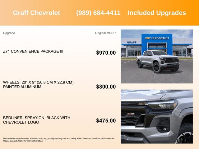 Sterling Gray Metallic 2026 Chevrolet Colorado Z71 2.7L I4 Turbocharged DOHC 16V LEV3-ULEV50 310hp 8-Speed Automatic 4WD4WD.Our team is dedicated to getting you the best price and all the information you need to make an informed decision! Any vehicles showing in our inventory are on our lot, not at another store miles away. We believe in transparent pricing and we do not charge dealer fees or add any additional surprise fees to our prices.Call Graff today at 989-684-4411 to confirm availability! Note: Internet prices are not compatible with other offers unless specified by dealer.
