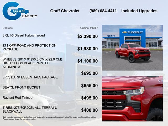 Radiant Red Tintcoat 2026 Chevrolet Silverado 1500 RST 3.0L I6 10-Speed Automatic 4WD10-Speed Automatic, 4WD, Black Cloth.Our team is dedicated to getting you the best price and all the information you need to make an informed decision! Any vehicles showing in our inventory are on our lot, not at another store miles away. We believe in transparent pricing and we do not charge dealer fees or add any additional surprise fees to our prices. Recent Arrival!Call Graff today at 989-684-4411 to confirm availability! Note: Internet prices are not compatible with other offers unless specified by dealer.