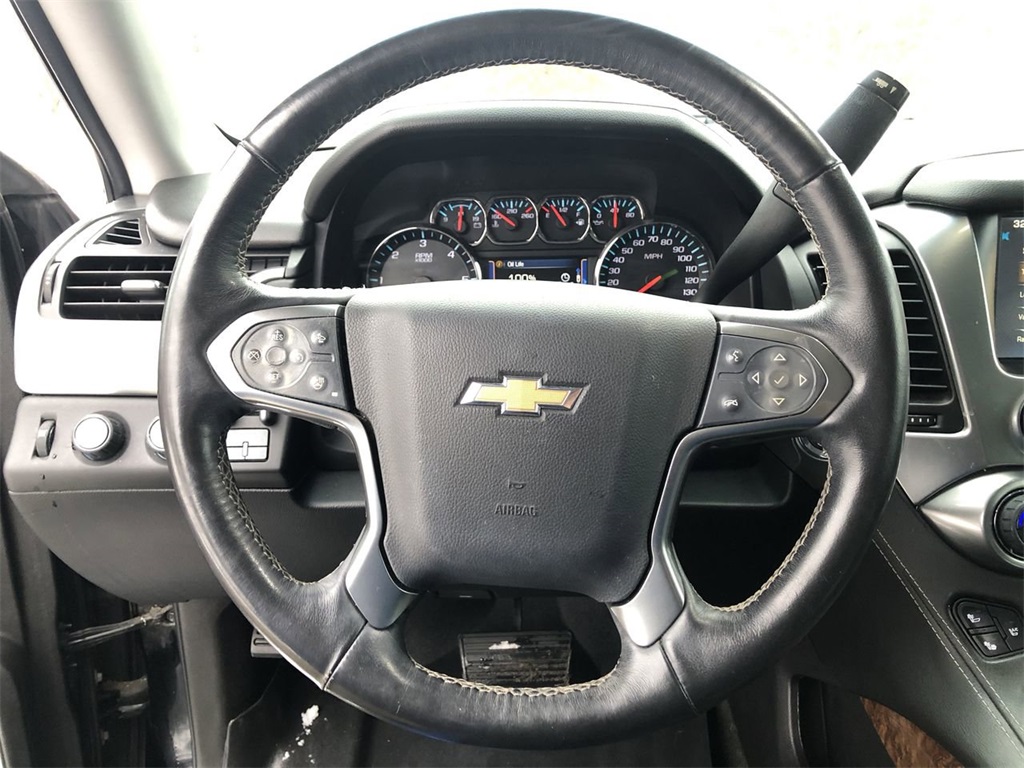 FREE 2 year/30k mile maintenance!!16/22 City/Highway MPG 4WD, Jet Black Leather, 10 Speakers, 2-Speed Active Electronic AutoTrac Transfer Case, 3rd Row 60/40 Power Fold Split-Bench, 3rd row seats: split-bench, 4-Wheel Disc Brakes, 5 12-Volt Auxiliary Power Outlets, ABS brakes, Adaptive suspension, Adjustable pedals, Air Conditioning, Alloy wheels, AM/FM radio: SiriusXM, Auto-dimming door mirrors, Auto-Dimming Inside Rear-View Mirror, Auto-dimming Rear-View mirror, Automatic temperature control, Bluetooth® For Phone, Bodyside moldings, Bose Centerpoint Premium 10-Speaker Surround Sound, Brake assist, Bumpers: body-color, CD player, Compass, Delay-off headlights, Driver door bin, Driver Inboard & Front Passenger Airbags, Driver vanity mirror, Dual front impact airbags, Dual front side impact airbags, Electronic Stability Control, Emergency communication system: OnStar Directions & Connections, Exterior Parking Camera Rear, Floor Console, Fog Lamps, Forward Collision Alert, Front & Rear Parking Assist, Front anti-roll bar, Front Bucket Seats, Front Center Armrest, Front dual zone A/C, Front fog lights, Front Heated Reclining Bucket Seats, Front reading lights, Front wheel independent suspension, Fully automatic headlights, Garage door transmitter, Hands Free Power Liftgate, Heated & Cooled Driver & Front Passenger Seats, Heated 2nd Row Seats, Heated door mirrors, Heated front seats, Heated Leather Wrapped Steering Wheel, Heated rear seats, Heated steering wheel, Heavy-Duty Rear Locking Differential, High-Intensity Discharge Headlights, Illuminated entry, Integrated Trailer Brake Controller, Keyless Start Switch, Lane Departure Warning & Safety Alert Seat, Low tire pressure warning, Magnetic Ride Control Suspension Package, Max Trailering Package, Memory seat, Memory Settings, Navigation System, Occupant sensing airbag, Outside temperature display, Overhead airbag, Overhead console, Panic alarm, Passenger door bin, Passenger vanity mirror, Passive Entry System, Pedal memory, Perforated Leather-Appointed Seat Trim, Power Adjustable Pedals, Power door mirrors, Power driver seat, Power Liftgate, Power passenger seat, Power Release 2nd Row Bucket Seats, Power steering, Power Sunroof, Power Tilt & Telescoping Steering Column, Power windows, Power-Folding Heated Outside Mirrors, Power-Retractable Assist Steps, Preferred Equipment Group 1LZ, Premium audio system: Chevrolet MyLink, Radio: Chevrolet MyLink w/Navigation/AM/FM Stereo, Rain sensing wipers, Rear air conditioning, Rear anti-roll bar, Rear Cross-Traffic Alert, Rear reading lights, Rear Seat Blu-Ray/DVD Entertainment System, Rear window defroster, Rear window wiper, Remote Keyless Entry, Remote keyless entry, Roof rack: rails only, Security system, Set of 4 Wheel Locks (LPO), Side Blind Zone Alert w/Lane Change Alert, Single-Slot CD/MP3 Player, SiriusXM Satellite Radio, Speed control, Speed-sensing steering, Split folding rear seat, Spoiler, Steering wheel memory, Steering wheel mounted audio controls, Sun, Entertainment & Destinations Package, Tachometer, Telescoping steering wheel, Tilt steering wheel, Traction control, Trip computer, Turn signal indicator mirrors, Universal Home Remote, Variably intermittent wipers, Ventilated front seats, Voltmeter, Wheels: 20 x 9 Chrome, Wireless Charging.4WD 6-Speed Automatic Electronic with Overdrive EcoTec3 5.3L V8Awards: * JD Power Automotive Performance, Execution and Layout (APEAL) Study, JD Power Initial Quality Study * 2015 KBB.com Best Buy Awards * 2015 KBB.com 15 Best Family CarsStop By Today Test drive this must-see, must-drive, must-own beauty today at Graff Chevrolet, 1748 West Grand River Ave, Okemos, MI 48805. CALL TRICIA TODAY FOR A TEST DRIVE @ 517-827-5018 OR TEXT ME @ 517-896-9939.