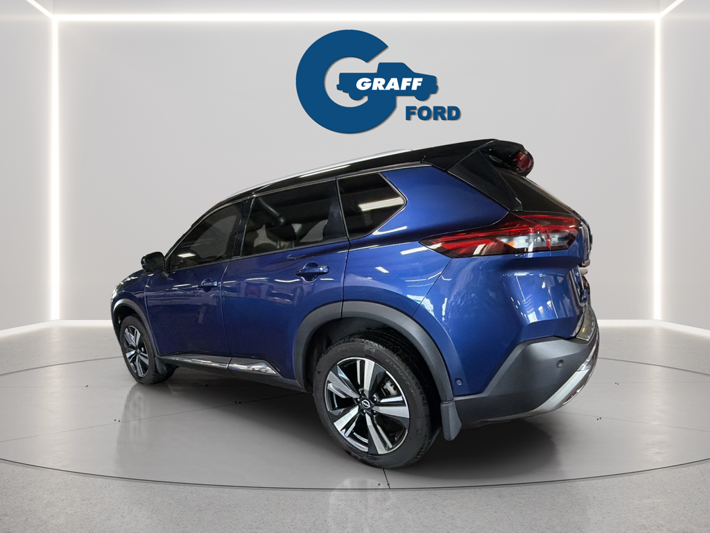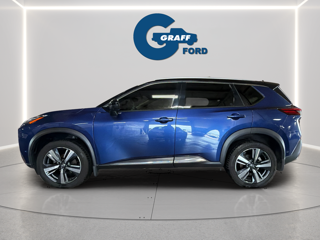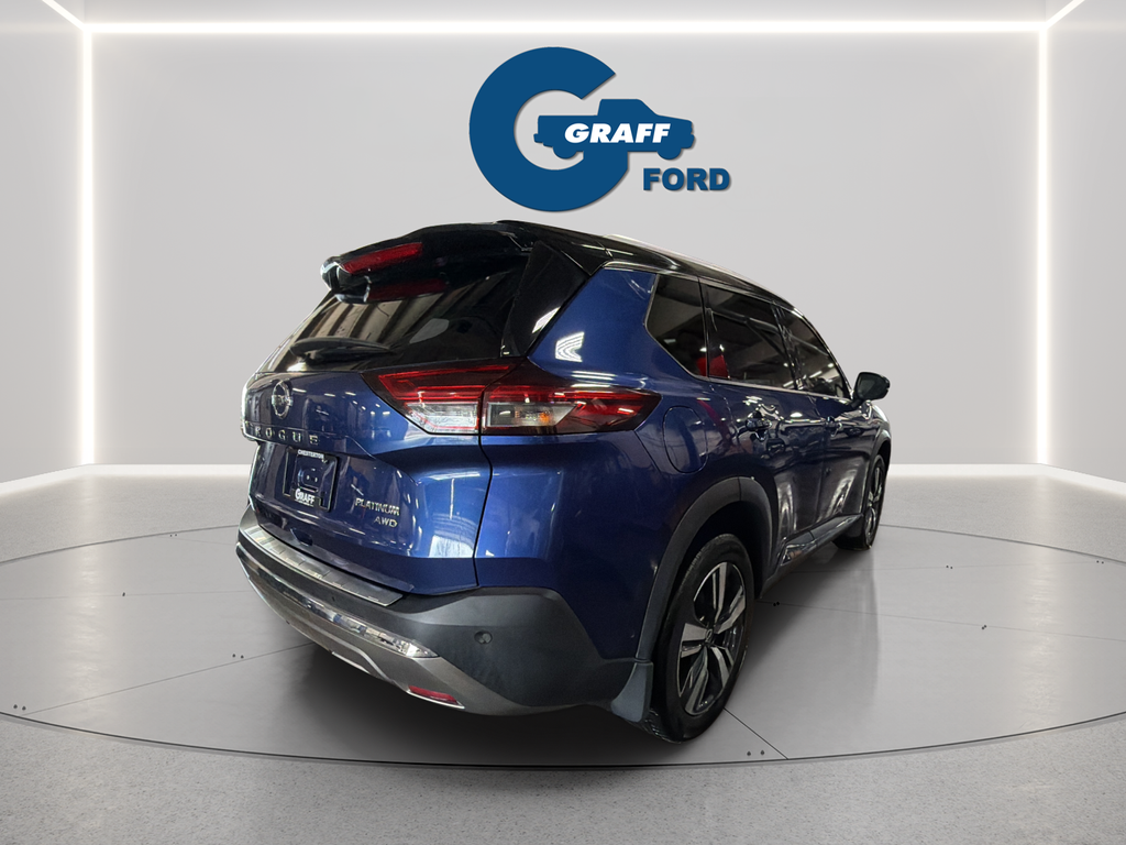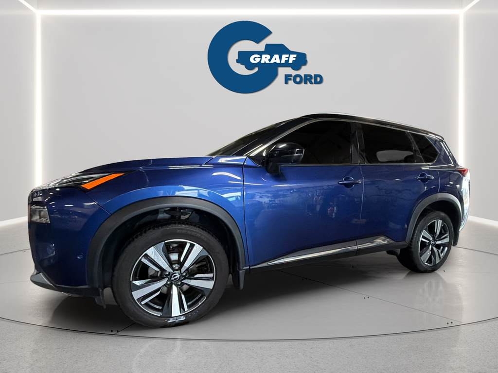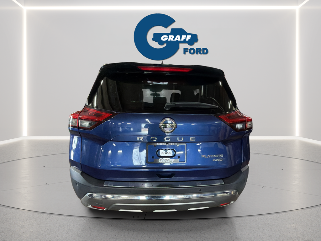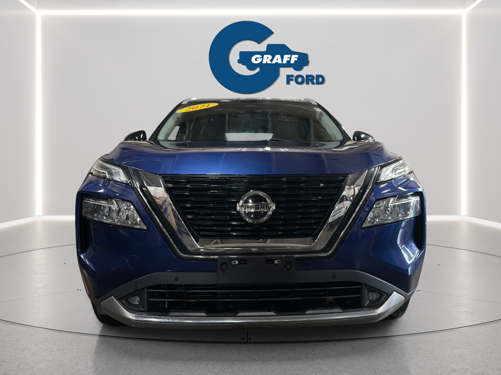 Discover the perfect blend of style, technology, and performance in the 2021 Nissan Rogue Platinum. This remarkable SUV is ready to elevate your driving experience and exceed your expectations.- Chrome Rear Bumper Protector- Floor Mats w/2-Piece Cargo Area Protector- Illuminated Kick Plates- Black Splash Guards (Set of 4)- 10 Speakers- Bose Premium Audio System- Radio: AM/FM NissanConnect w/Navigation- Heads-Up Display- Memory Seat- Power LiftgateThe 2021 Rogue Platinum's stunning exterior in Blue commands attention, while the spacious and well-appointed interior offers unparalleled comfort and convenience. Indulge in the luxurious quilted semi-aniline leather seating, which is both stylish and exceptionally comfortable. The Rogue Platinum's advanced safety features, including Automatic Emergency Braking, Blind Spot Warning, and Rear Cross-Traffic Alert, provide you and your loved ones with the utmost protection.Beneath the hood, the Rogue Platinum's 2.5L I4 DOHC 16V engine, paired with a continuously variable transmission (CVT) and all-wheel drive, delivers a dynamic and efficient driving experience. With an impressive 25 city/32 highway MPG, this SUV offers the perfect balance of power and fuel economy.Experience the ultimate in modern convenience with the Rogue Platinum's cutting-edge technology. The NissanConnect infotainment system, complete with Apple CarPlay and Android Auto integration, keeps you seamlessly connected on the go. The Heads-Up Display projects vital driving information directly into your line of sight, allowing you to stay focused on the road ahead.Elevate your driving experience with the 2021 Nissan Rogue Platinum. This exceptional SUV combines style, performance, and advanced features to provide you with an unparalleled driving experience. Visit Graff Ford of Chesterton today to schedule a test drive and discover the true potential of the Rogue Platinum.Welcome to Graff Ford of Chesterton, Northwest Indiana’s newest premier Ford dealership! Proudly serving the greater Northwest Indiana and Chicagoland area, Graff Ford delivers a trusted, family-owned car-buying experience built on honesty, value, and community. Conveniently located just off I-80/94, our Ford dealership is easy to reach from across Northwest Indiana and Chicago. Shop new and used Ford vehicles with confidence, whether you visit us in person or take advantage of our remote buying program. At Graff Ford, we make it simple to browse, buy, and drive with exceptional customer service and a commitment to doing business the right way. No hidden fees, no games, no gimmicks. Always Graff!!!