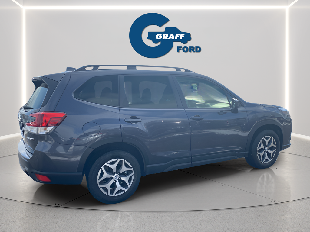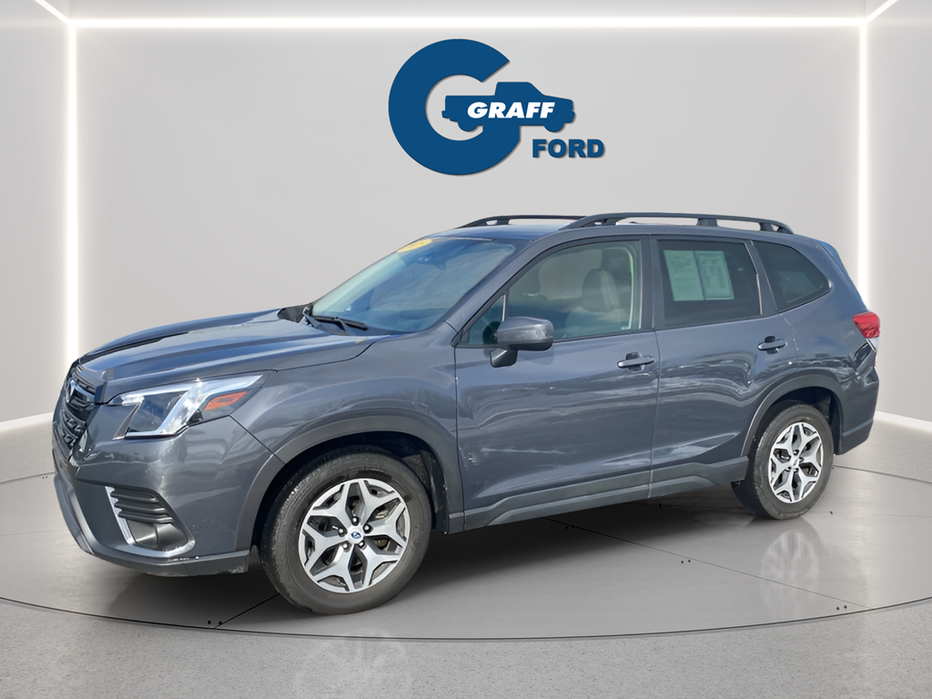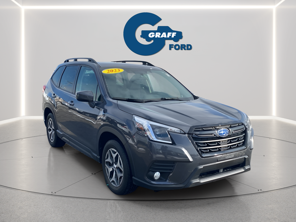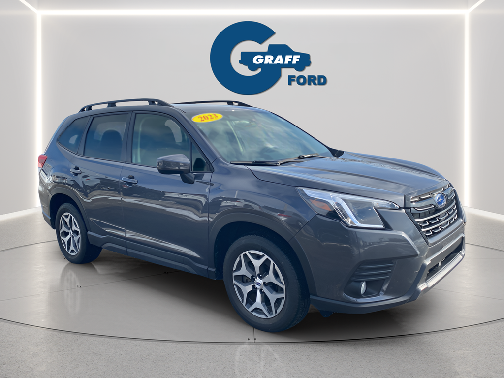 Discover the versatile and capable 2023 Subaru Forester Premium, a crossover SUV that seamlessly blends style, technology, and off-road prowess. With its sleek Gray exterior, this Forester is a head-turner, while its impressive 2.5L 4-Cylinder DOHC 16V engine and Lineartronic CVT AWD powertrain deliver an exceptional driving experience.This Forester Premium comes equipped with a remarkable array of features, including:- Blind Spot Detection with Rear Cross-Traffic Alert and Power Rear Gate- Dual USB Charge Ports- EyeSight System- Multi-Function High Grade Display- STARLINK/Apple CarPlay/Android Auto- Panoramic Power Moonroof- Heated Front Bucket Seats- 17 Black Machine Finish Alloy WheelsThe Forester's impressive fuel efficiency, with 26 MPG in the city and 33 MPG on the highway, makes it an economical choice for your daily commute or weekend adventures. Its spacious interior and versatile cargo area provide ample room for passengers and gear, while the Blind Spot Detection and Rear Cross-Traffic Alert systems enhance your safety and confidence on the road.Discover the perfect blend of style, technology, and capability in the 2023 Subaru Forester Premium. This crossover SUV is ready to elevate your driving experience and take you wherever life's journey leads. Visit our showroom today and let our knowledgeable team guide you through all the features and benefits this exceptional vehicle has to offer.Welcome to Graff Ford of Chesterton, Northwest Indiana's newest premier Ford dealership! Proudly serving the greater Northwest Indiana and Chicagoland area, Graff Ford delivers a trusted, family-owned car-buying experience built on honesty, value, and community. Conveniently located just off I-80/94, our Ford dealership is easy to reach from across Northwest Indiana and Chicago. Shop new and used Ford vehicles with confidence, whether you visit us in person or take advantage of our remote buying program. At Graff Ford, we make it simple to browse, buy, and drive with exceptional customer service and a commitment to doing business the right way. No hidden fees, no games, no gimmicks. Always Graff!!!