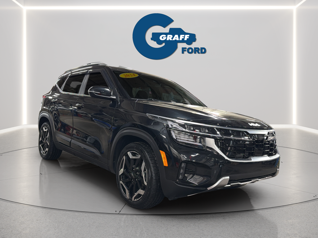 Discover the ultimate urban adventure with the stunning 2024 Kia Seltos SX. This sleek and sophisticated crossover SUV combines bold styling, advanced technology, and exceptional performance to elevate your driving experience.Tailored to your lifestyle, the Seltos SX boasts an impressive array of premium features, including:- Fusion Black exterior with Black interior- Midnight Green Interior Color Package- Navigation System- 8-speaker audio system- Apple CarPlay and Android Auto integration- Heated front seats- Sofino Premium Leatherette Seat Trim- 18-inch alloy wheels with a machined finishPowered by a robust I4 engine and equipped with an 8-speed automatic transmission and all-wheel drive, the Seltos SX delivers a thrilling and confident ride, with an EPA-estimated 25 mpg in the city and 27 mpg on the highway.Safety is paramount, and the Seltos SX is packed with advanced driver-assistance technologies, such as automatic emergency braking, lane-keeping assist, and a rearview camera, ensuring your peace of mind on every journey.Whether you're navigating the urban jungle or exploring the open road, the 2024 Kia Seltos SX is the perfect companion. With its stunning good looks, cutting-edge features, and exceptional performance, this crossover SUV is sure to captivate and impress.Experience the difference for yourself. Visit Graff Ford of Chesterton, Northwest Indiana's newest premier Ford dealership, and discover the exceptional value and quality of the 2024 Kia Seltos SX.Welcome to Graff Ford of Chesterton, Northwest Indiana’s newest premier Ford dealership! Proudly serving the greater Northwest Indiana and Chicagoland area, Graff Ford delivers a trusted, family-owned car-buying experience built on honesty, value, and community. Conveniently located just off I-80/94, our Ford dealership is easy to reach from across Northwest Indiana and Chicago. Shop new and used Ford vehicles with confidence, whether you visit us in person or take advantage of our remote buying program. At Graff Ford, we make it simple to browse, buy, and drive with exceptional customer service and a commitment to doing business the right way. No hidden fees, no games, no gimmicks. Always Graff!!!