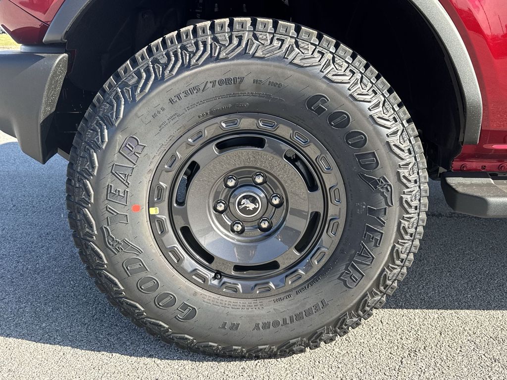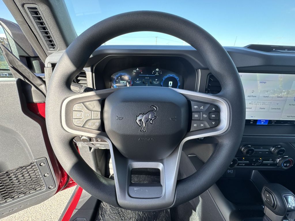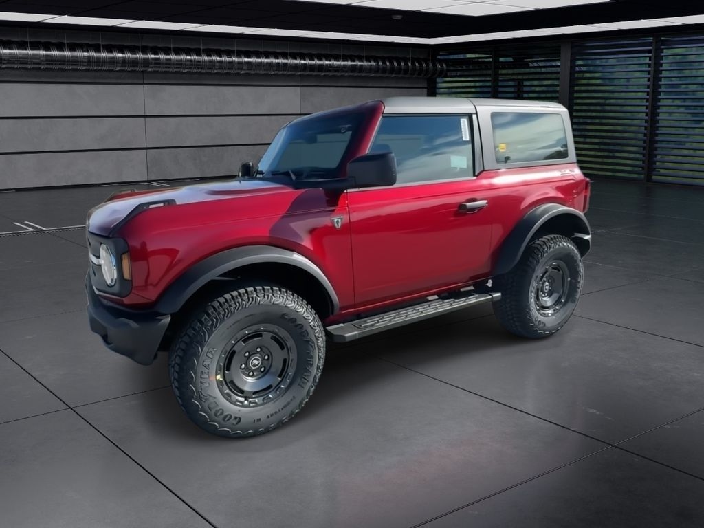 2025 Ford Bronco Base Ruby Red Metallic Tinted Clearcoat4WD 10-Speed Automatic 2.3L EcoBoost I-44.7 Final Drive Ratio, AM/FM radio: SiriusXM with 360L, Convertible HardTop, Emergency communication system: 911 Assist, Equipment Group 101A, Fully automatic headlights, Glass rear window, High Clearance Fender Flares, High Clearance Suspension, Integrated roll-over protection, Position-Sensitive Bilstein Shock Absorbers, Sasquatch Graphics Package, Sasquatch Package, Wheels: 17 Carbonized Gray Painted Aluminum.
