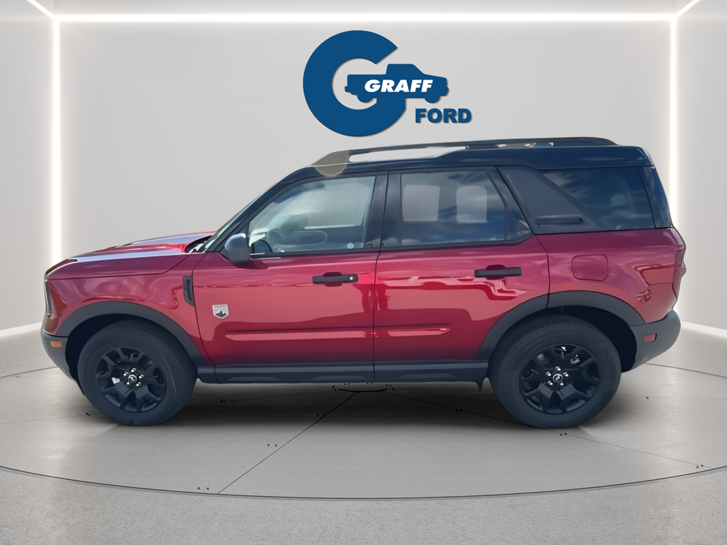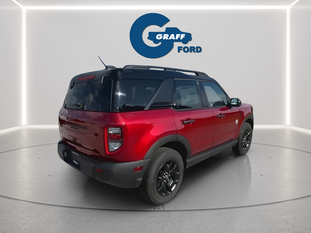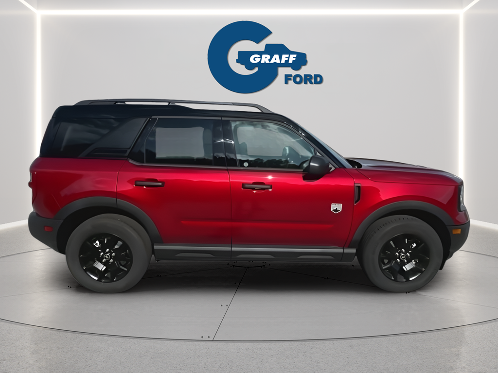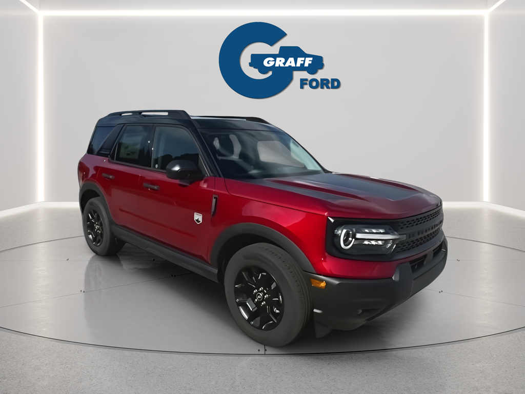 2025 Ford Bronco Sport Big Bend Ruby Red Metallic Tinted Clearcoat4WD 8-Speed Automatic 1.5L EcoBoostBlack Appearance Package, Carbon Black Grille w/Black BRONCO Lettering, Cargo Mat, Convenience Package, Emergency communication system: SYNC 4 911 Assist, Equipment Group 200A, Front & Rear Floor Liners w/o Carpet Mats, Front Driver/Passenger Seat Back Map Pockets, Fully automatic headlights, Heated 8-Way Power Driver's Seat, LED Fog Lamps, Liftgate w/Black BRONCO SPORT Lettering, Painted Shadow Black Roof, Power Moonroof, Premium Trimmed Htd Fr Sport Contour Bucket Seats, Premium Wrapped Steering Wheel, SYNC 4 w/Enhanced Voice Recognition, Universal Garage Door Opener (UGDO), Wheels: 17 Matte Black-Painted Aluminum.25/30 City/Highway MPG Price includes: $2000 - Retail Customer Cash. Exp. 03/31/2026