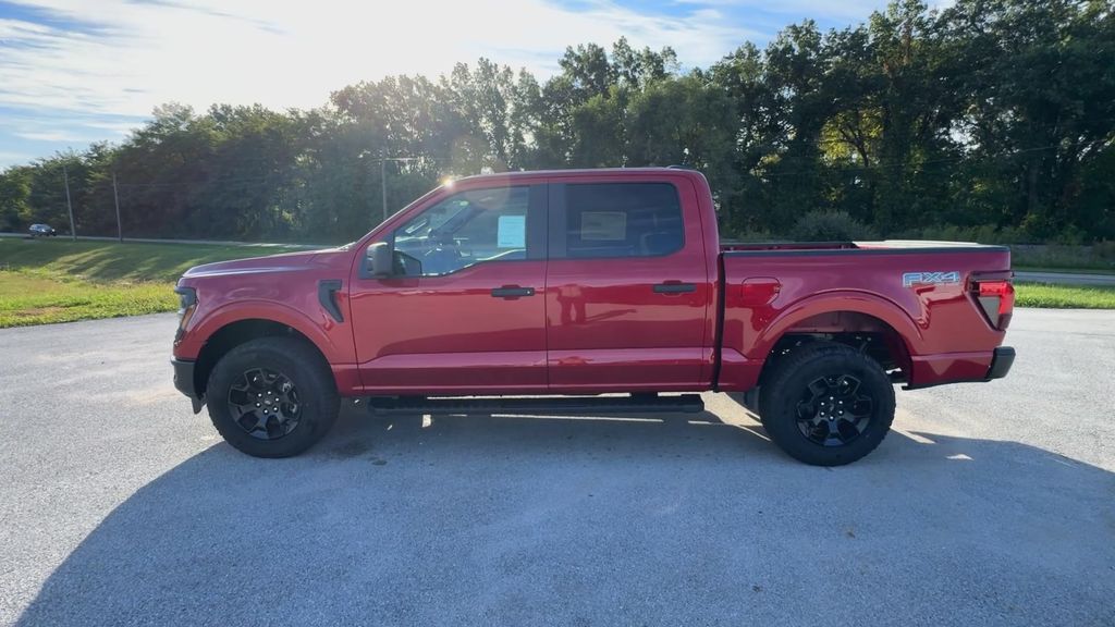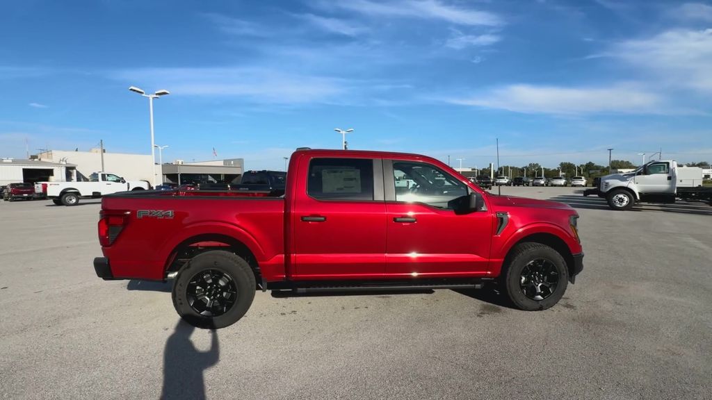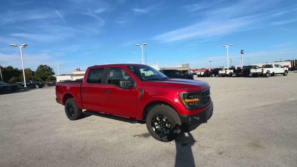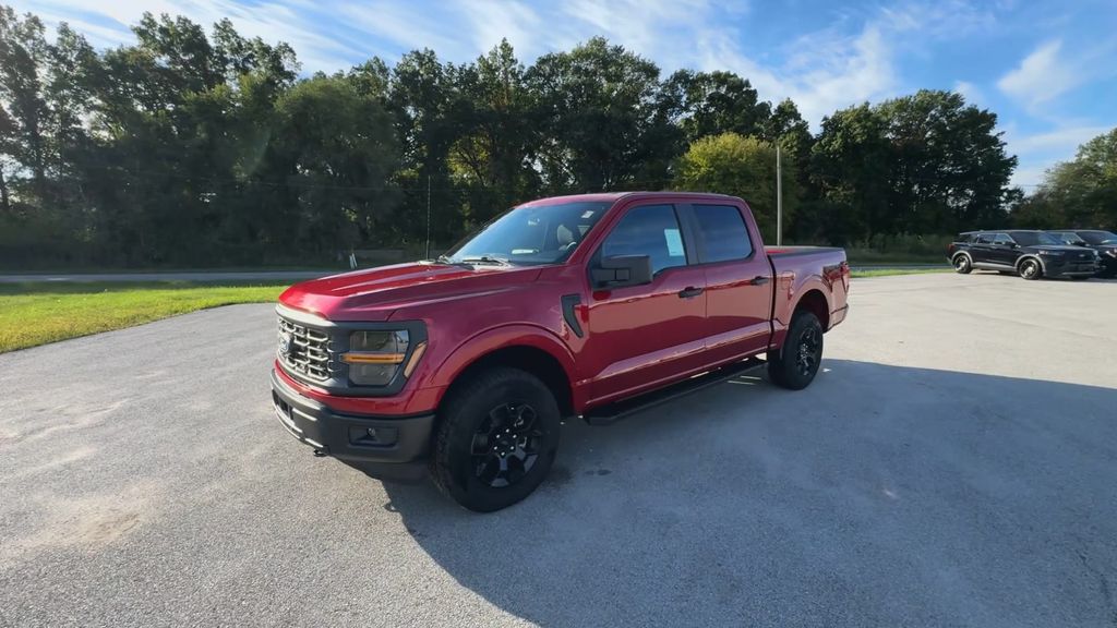 2025 Ford F-150 STX Rapid Red Metallic Tinted Clearcoat4WD 10-Speed Automatic 2.7L V6 EcoBoost4WD, 3.55 Axle Ratio, 6 Black Running Boards, Argent Front/Rear Bumper, Dual Exhaust w/Black Tips, Emergency communication system: SYNC 4 911 Assist, Equipment Group 201A FX4, Fully automatic headlights, FX4 Box Decal, GVWR: 6,650 lbs Payload Package, Integrated Trailer Brake Controller, LED Fog Lamps w/LED Cornering Lamp, Monotube Rear Shocks, Off-Road Tuned Front Shock Absorbers, Radio: AM/FM Stereo w/SiriusXM 360L, Rear step bumper, Retractable Rear Center Step, STX Badge in Fender Vent, SYNC 4 w/Enhanced Voice Recognition, Tray Style Floor Liner, Unique Cloth 40/Console/40 Front Seats, Wheels: 18 Black Painted Aluminum.