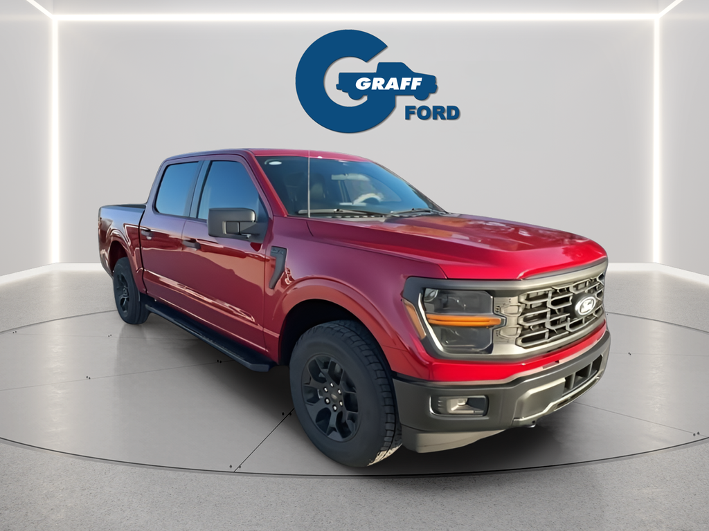 2025 Ford F-150 STX Rapid Red Metallic Tinted Clearcoat4WD 10-Speed Automatic 2.7L V6 EcoBoost4WD, 3.55 Axle Ratio, 4-Wheel Disc Brakes, 6 Speakers, 6 Black Running Boards, ABS brakes, Air Conditioning, Argent Front/Rear Bumper, Auto High-beam Headlights, Brake assist, Delay-off headlights, Dual Exhaust w/Black Tips, Dual front impact airbags, Dual front side impact airbags, Electronic Stability Control, Emergency communication system: SYNC 4 911 Assist, Equipment Group 201A FX4, Front anti-roll bar, Front wheel independent suspension, Fully automatic headlights, FX4 Box Decal, GVWR: 6,650 lbs Payload Package, Illuminated entry, LED Fog Lamps w/LED Cornering Lamp, Low tire pressure warning, Monotube Rear Shocks, Occupant sensing airbag, Off-Road Tuned Front Shock Absorbers, Overhead airbag, Passenger door bin, Power door mirrors, Power steering, Power windows, Radio: AM/FM Stereo w/SiriusXM 360L, Rear Parking Sensors, Rear step bumper, Rear window defroster, Remote keyless entry, Speed control, Split folding rear seat, Steering wheel mounted audio controls, STX Badge in Fender Vent, SYNC 4 w/Enhanced Voice Recognition, Telescoping steering wheel, Tilt steering wheel, Tough Bed Spray-In Bedliner, Traction control, Tray Style Floor Liner, Unique Cloth 40/Console/40 Front Seats, Variably intermittent wipers, Wheels: 18 Black Painted Aluminum.Priced below KBB Fair Purchase Price!Welcome to Graff Ford of Chesterton, Northwest Indiana's newest premier Ford dealership! Proudly serving the greater Northwest Indiana and Chicagoland area, Graff Ford delivers a trusted, family-owned car-buying experience built on honesty, value, and community. Conveniently located just off I-80/94, our Ford dealership is easy to reach from across Northwest Indiana and Chicago. Shop new and used Ford vehicles with confidence, whether you visit us in person or take advantage of our remote buying program. At Graff Ford, we make it simple to browse, buy, and drive with exceptional customer service and a commitment to doing business the right way. No hidden fees, no games, no gimmicks. Always Graff!!! Price includes: $1250 - Retail Bonus Cash. Exp. 03/31/2026 $1500 - UAW Member Offer. Exp. 03/31/2026 $2000 - Retail Customer Cash. Exp. 03/31/2026 $500 - 2026 Military Recognition Exclusive Cash Reward. Exp. 01/04/2027 $500 - Retail Bonus Cash. Exp. 03/31/2026