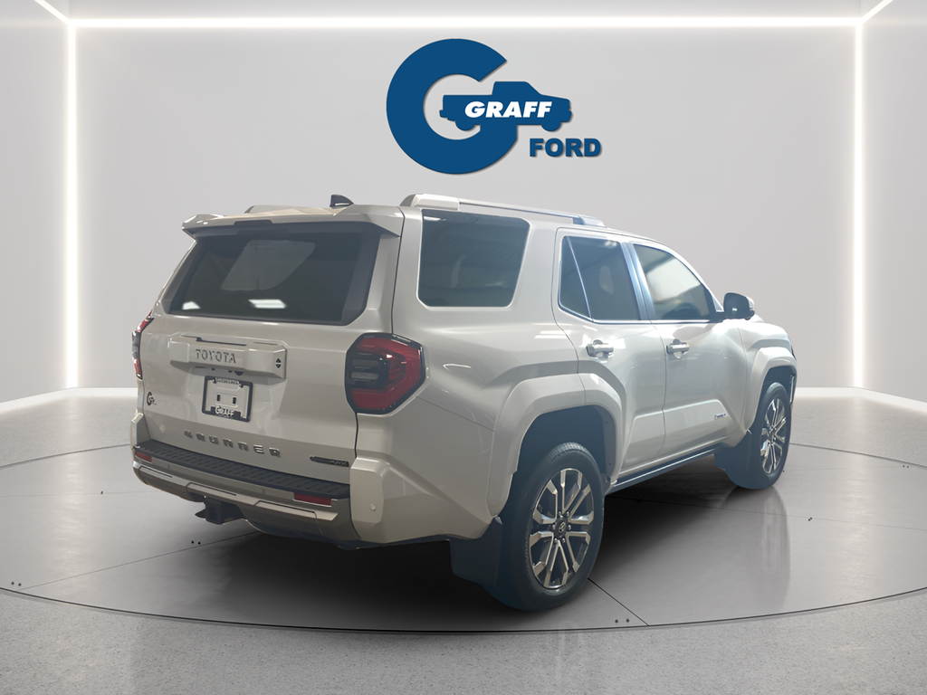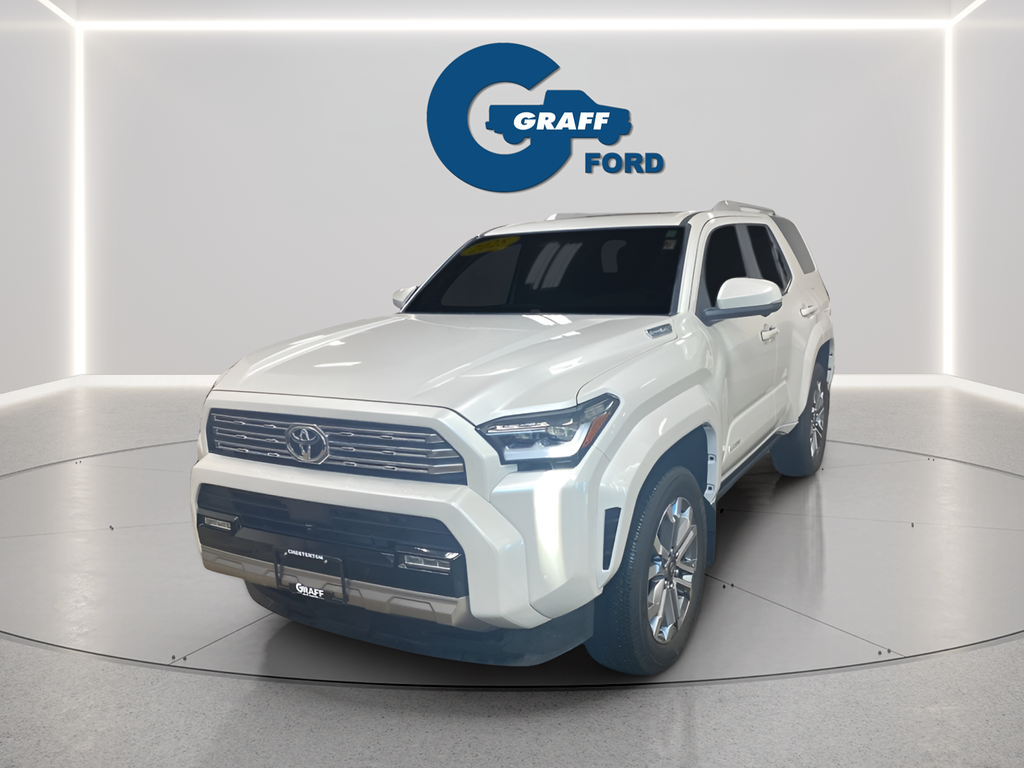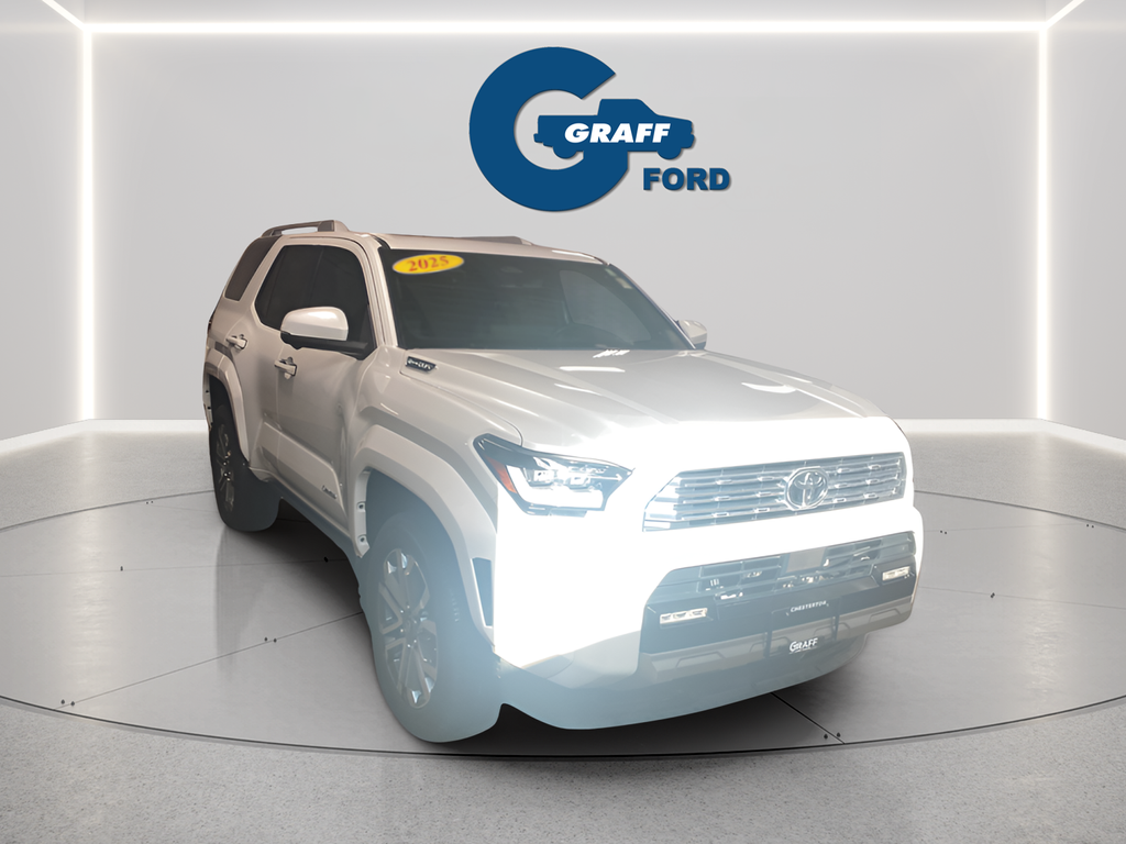 Elevate your driving experience with the exceptional 2025 Toyota 4Runner i-FORCE MAX Hybrid Limited. This remarkable SUV combines the power and capability you expect from the legendary 4Runner with the efficiency and innovation of Toyota's advanced hybrid technology.Boasting a stunning Off-white exterior, this 4Runner is equipped with a host of premium features, including:- INTERIOR D-PILLAR CARGO LIGHTS (TMS)- 4RUNNER ALL WEATHER FLOOR MATS (TMS)- POWER RUNNING BOARDS- FRONT & REAR MOLDED BLACK 4RUNNER MUDGUARDS (TMS)- SPECIAL COLOR- 4RUNNER ALL WEATHER CARGO TRAY (TMS)- LED LIFTGATE LIGHTUnder the hood, the 2.4L I4 FI Hybrid Turbocharged DOHC 16V engine delivers an impressive blend of power and efficiency, with an EPA-estimated 23 MPG in the city and 24 MPG on the highway. Paired with an 8-speed automatic transmission and Toyota's renowned 4WD system, this 4Runner is ready to take on any adventure.Climb inside and experience the luxurious comfort of the Limited trim, featuring 15 premium speakers, a 14 audio system, and a host of advanced technology and safety features, including:- Heated and ventilated front bucket seats- Leather seat trim- Navigation system- Apple CarPlay and Android Auto integration- Rear-view camera- Blind-spot monitoring- Rear cross-traffic alert- And much moreWith its exceptional capabilities, premium amenities, and Toyota's renowned reliability, the 2025 Toyota 4Runner i-FORCE MAX Hybrid Limited is the ultimate choice for those seeking a versatile, high-performance SUV that can handle any road, any weather, and any lifestyle. Experience the difference for yourself – schedule a test drive today!Welcome to Graff Ford of Chesterton, Northwest Indiana’s newest premier Ford dealership! Proudly serving the greater Northwest Indiana and Chicagoland area, Graff Ford delivers a trusted, family-owned car-buying experience built on honesty, value, and community. Conveniently located just off I-80/94, our Ford dealership is easy to reach from across Northwest Indiana and Chicago. Shop new and used Ford vehicles with confidence, whether you visit us in person or take advantage of our remote buying program. At Graff Ford, we make it simple to browse, buy, and drive with exceptional customer service and a commitment to doing business the right way. No hidden fees, no games, no gimmicks. Always Graff!!!
