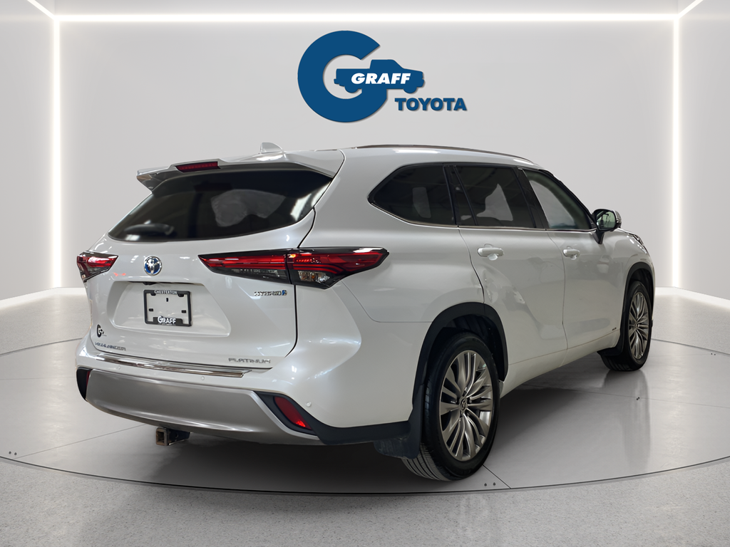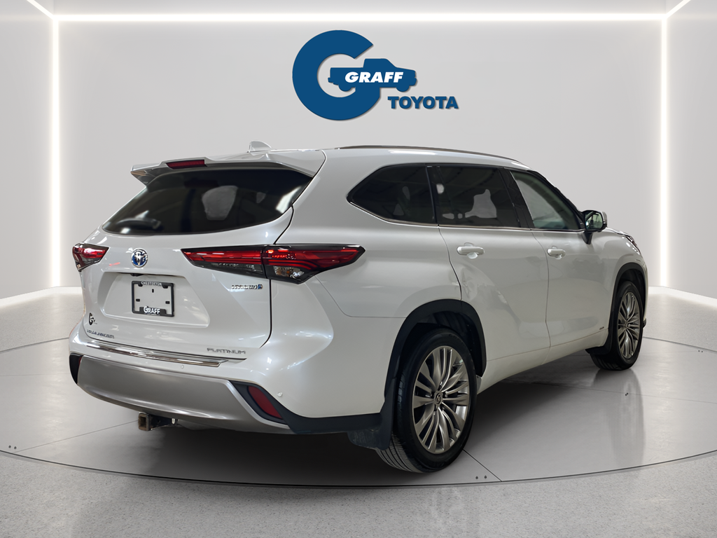 Elevate your driving experience with this exceptional 2023 Toyota Highlander Hybrid Platinum. Boasting a striking white exterior, this SUV combines unparalleled style and advanced hybrid technology to deliver an unmatched driving experience.- Special Color- Platinum Package- 11 Speakers, AM/FM radio: SiriusXM, 12.3 Toyota Audio Multimedia w/JBL Premium, Heads-Up Display, Panoramic Moonroof, Power Liftgate, Heated Front Bucket Seats, Ventilated Front Seats, Leather Seat Trim, and much more.Powered by a 2.5L I4 PDI Hybrid DOHC 16V LEV3-SULEV30 engine paired with an eCVT and AWD, this Highlander Hybrid delivers an exceptional 35 MPG in the city and 34 MPG on the highway, making it an incredibly efficient and eco-friendly choice.The Platinum trim level elevates the Highlander experience with a host of premium features, including a Panoramic View Monitor, Heated Steering Wheel, Garage Door Transmitter, and Rain-Sensing Wipers. The spacious interior offers seating for up to eight passengers, with a reclining third-row seat and ventilated front seats for maximum comfort.Cutting-edge technology abounds, with Apple CarPlay, Android Auto, and a 12.3 Toyota Audio Multimedia system providing seamless connectivity and entertainment. The Highlander Hybrid also boasts advanced safety features like Blind Spot Monitoring, Rear Cross-Traffic Alert, and a comprehensive suite of Toyota Safety Sense technologies.Whether you're embarking on family adventures, commuting in style, or seeking a versatile and eco-conscious SUV, this 2023 Toyota Highlander Hybrid Platinum is the perfect choice. Experience the perfect balance of power, efficiency, and premium amenities. Visit our showroom today and let us demonstrate why this Highlander Hybrid is the ideal vehicle for your lifestyle.