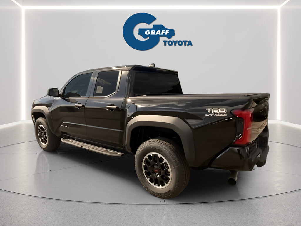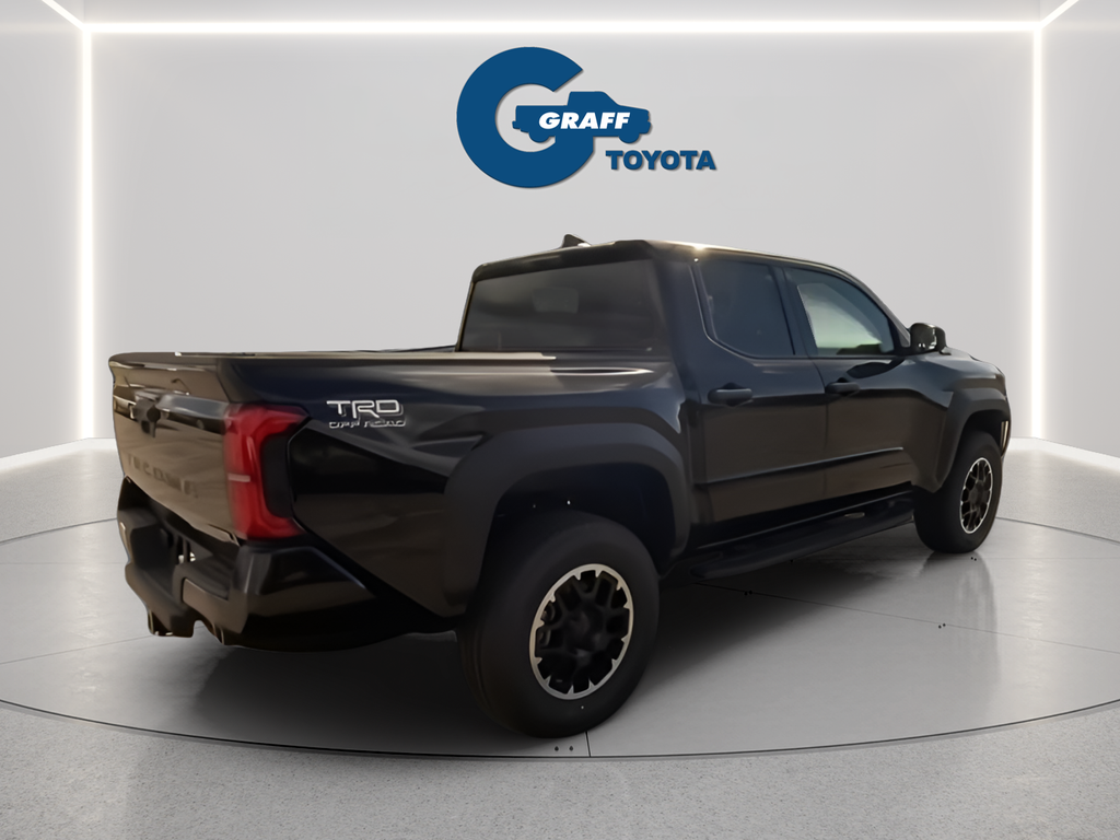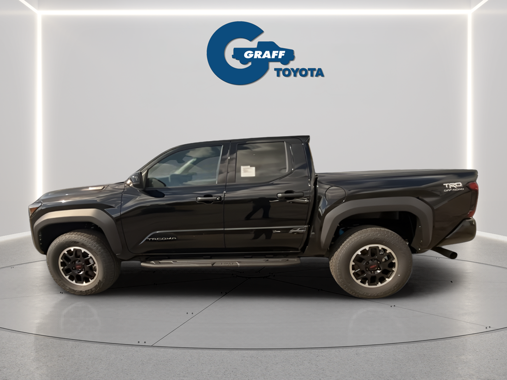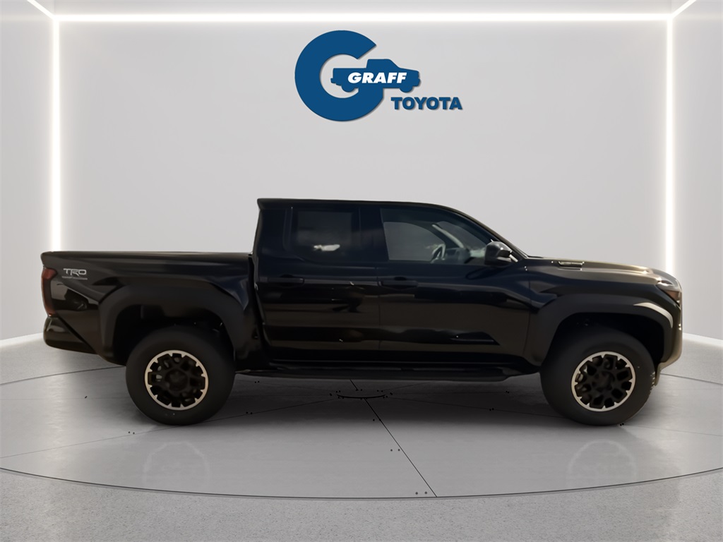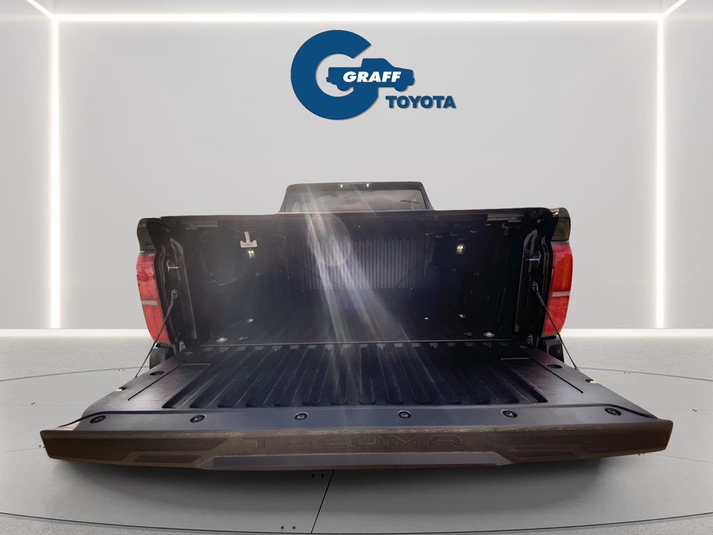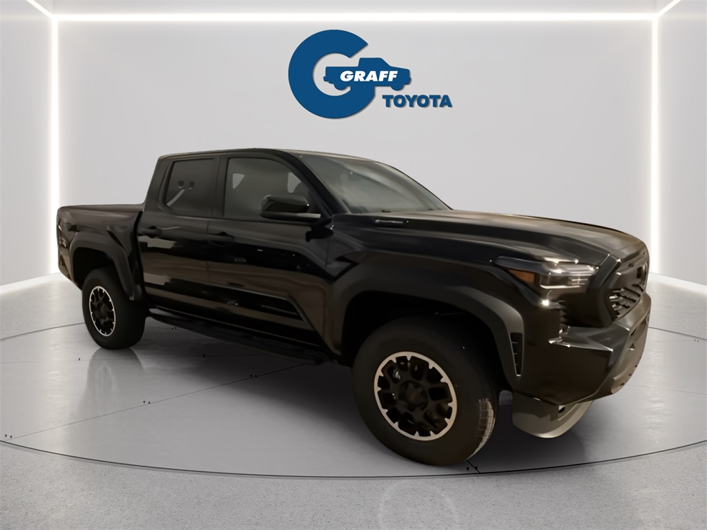 2025 Toyota Tacoma Hybrid TRD Off Road Black4WD 8-Speed Automatic 2.4L I4 PDI Hybrid Turbocharged DOHC 16V2.4L I4 PDI Hybrid Turbocharged DOHC 16V, 4-Wheel Disc Brakes, 6 Speakers, ABS brakes, Air Conditioning, Anti-whiplash front head restraints, Apple CarPlay/Android Auto, Auto High-beam Headlights, Auto-dimming Rear-View mirror, Black Badge Overlay (TMS), Brake assist, Dual front impact airbags, Dual front side impact airbags, Electronic Stability Control, Emergency communication system: Safety Connect (1-year trial), Exterior Parking Camera Rear, Four wheel independent suspension, Front anti-roll bar, Front Bucket Seats, Front fog lights, Fully automatic headlights, Hard Tri-Fold Tonneau Cover (TMS), Heated door mirrors, Heated Front Seats, Illuminated entry, JBL Premium Audio, Knee airbag, Leather Shift Knob, Leather steering wheel, Low tire pressure warning, Navigation system: Drive Connect (1 year trial) includes Cloud Navigation with real time traffic and Google POI, Occupant sensing airbag, Overhead airbag, Paint Protection Film (TMS), Panic alarm, Power steering, Power windows, Radio: 14 Toyota Audio Multimedia, Rear window defroster, Remote keyless entry, SofTex Seat Trim, Speed control, Speed-sensing steering, Steering wheel mounted audio controls, Telescoping steering wheel, Tilt steering wheel, Traction control, TRD Off Road Package, Turn signal indicator mirrors.Welcome to Graff Toyota – Northwest Indiana’s Newest Premier Auto Dealer, Now Open in Burns Harbor Discover Graff Toyota, proudly serving Burns Harbor, Valparaiso, Chesterton, and the entire Northwest Indiana region as the area’s newest premier Toyota dealership. As part of a trusted, family-owned dealership group, Graff Toyota brings a community-first, family-focused approach to car buying—delivering honest service, unbeatable value, and the latest Toyota models in a convenient, central location. Located just off I-80/94, Graff Toyota offers easy access for customers across Northwest Indiana and Chicagoland. Whether you're in Portage, Michigan City, or commuting from Chicago, we’re only minutes away—and our remote delivery service means we can bring your new vehicle right to your driveway. Experience the difference of working with a dealership that’s committed to community, convenience, and customer care. At Graff Toyota, we make it easy for you to browse, buy, and drive—locally or remotely. Always Graff!!!